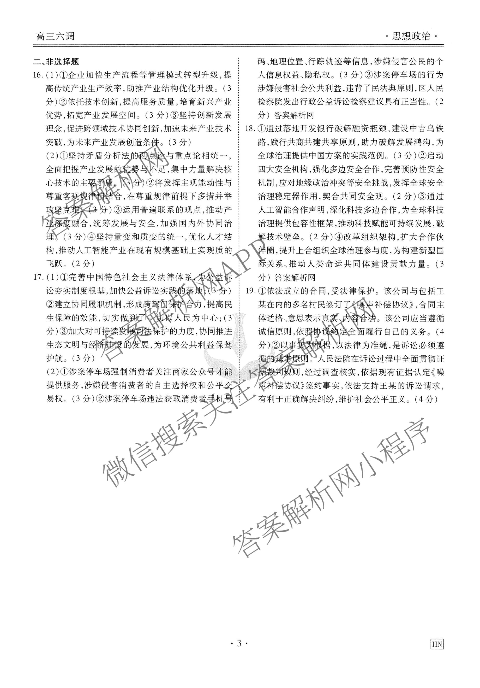 - [衡水金卷先享题]月考卷2025-2026学年度上学期[高三]年级六调考试政治答案