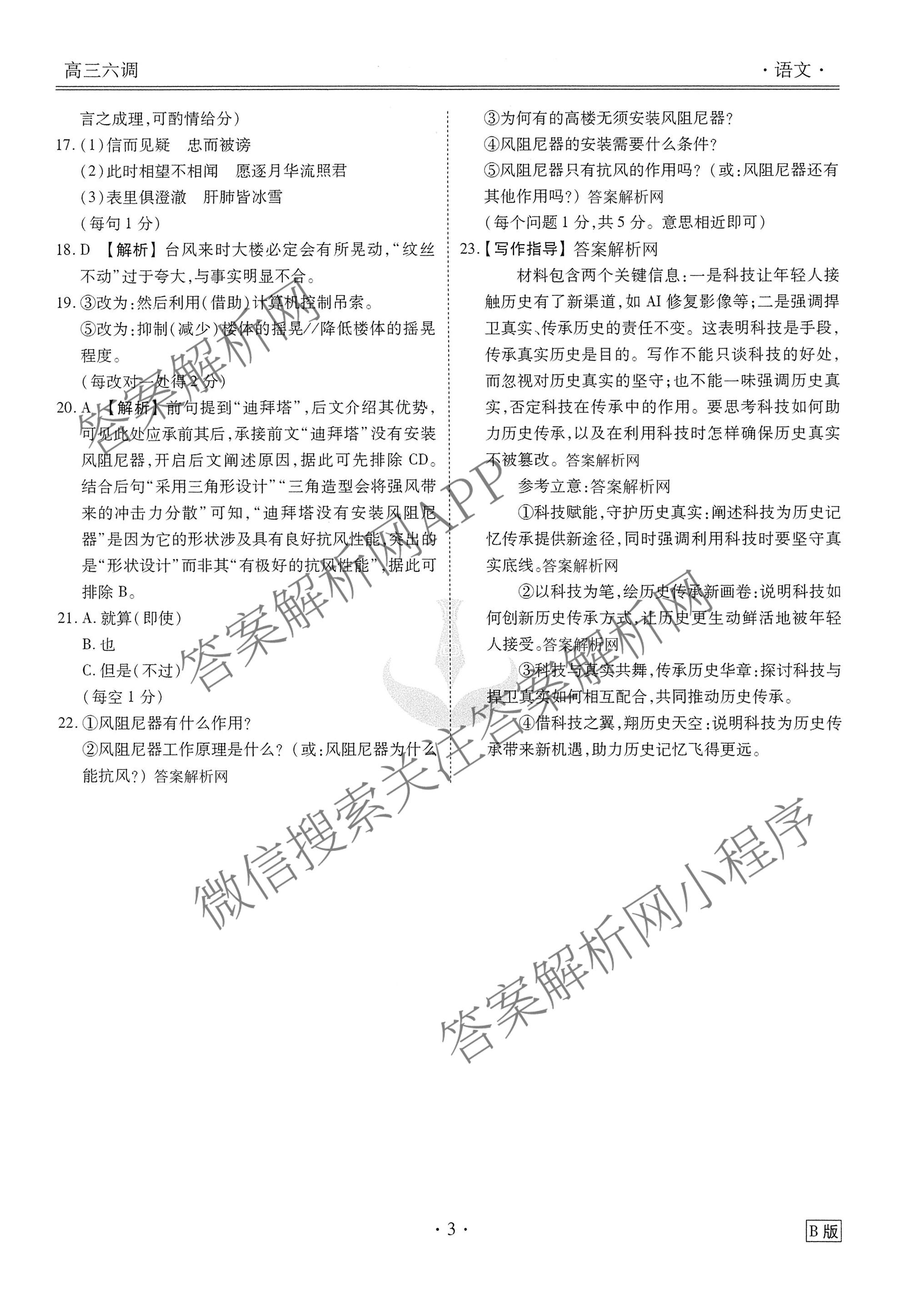 - 2025-2026(高三)[衡水金卷先享题]·月考卷·学年度上学期年级六调考试语文答案