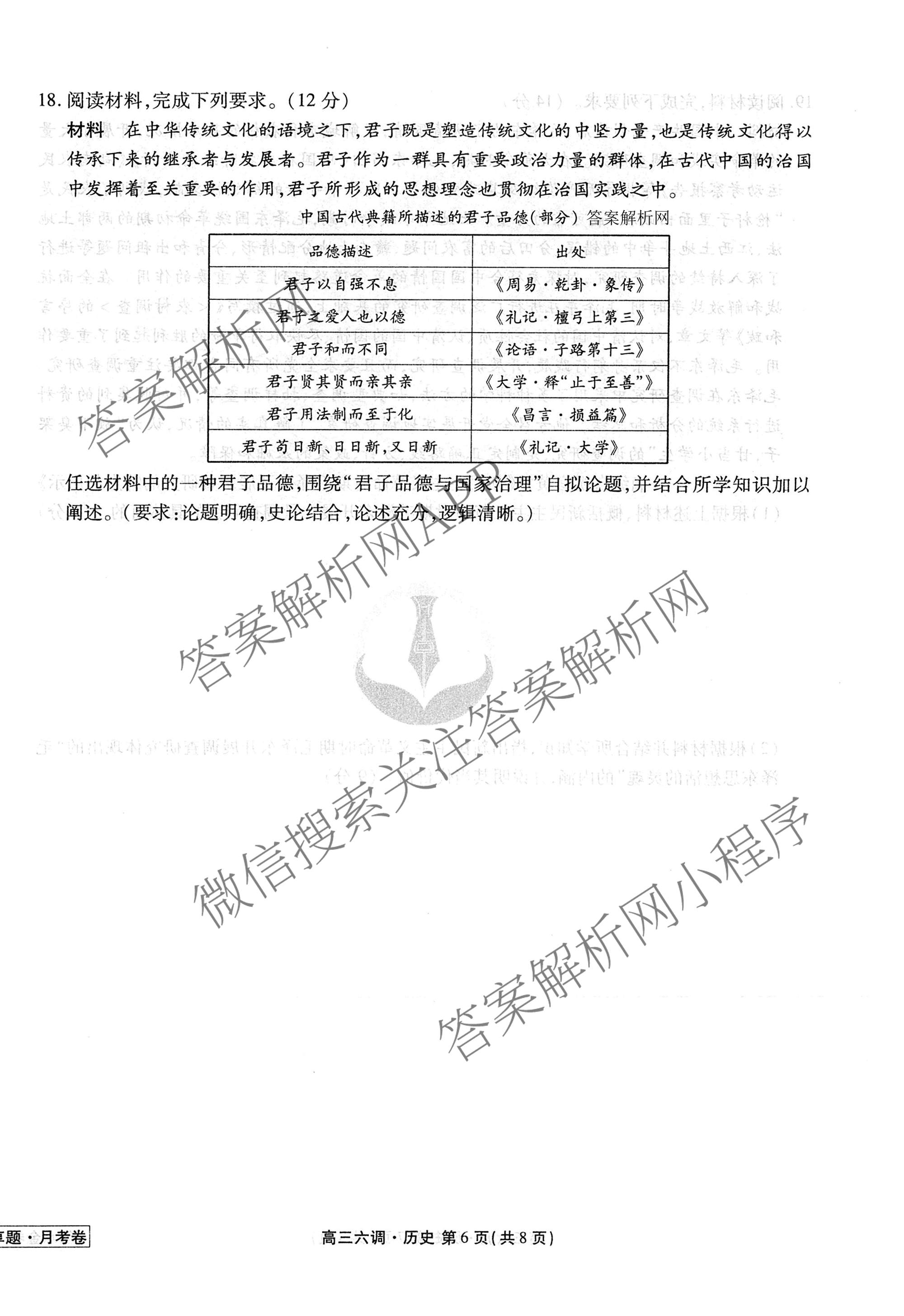 衡水金卷先享题·月考卷·2025-2026学年度上学期高三年级六调考试历史试题,目前衡水金卷先享题答案网已经汇总了衡水金卷先享题·月考卷·2025-2026学年度上学期高三年级六调考试历史试题的各科答案和试卷,获取更多衡水金卷先享题答案解析,请在关注本站。
