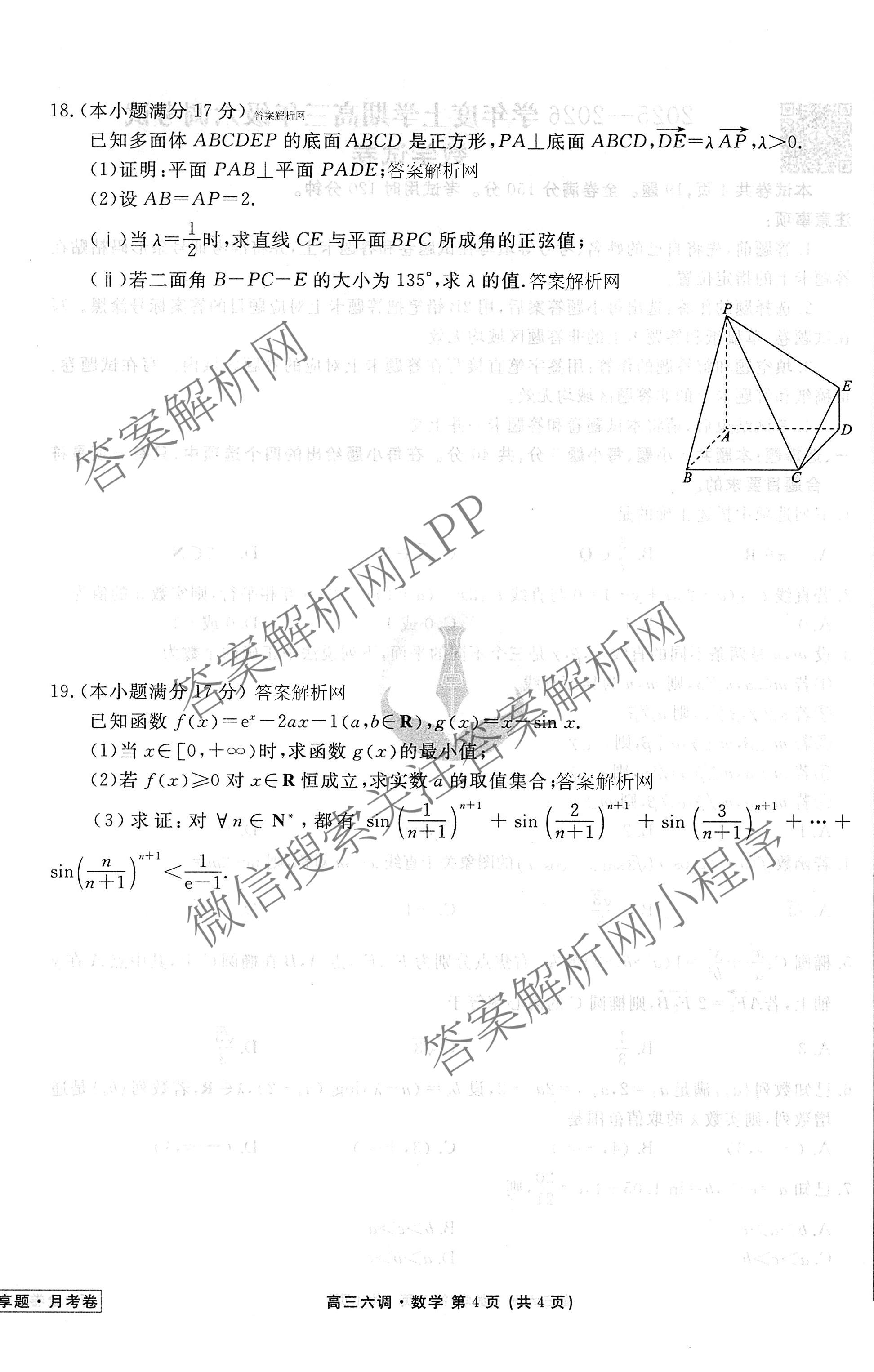 2025~2026(高三)(衡水金卷先享题)·月考卷·学年度上学期年级六调考试数学试题