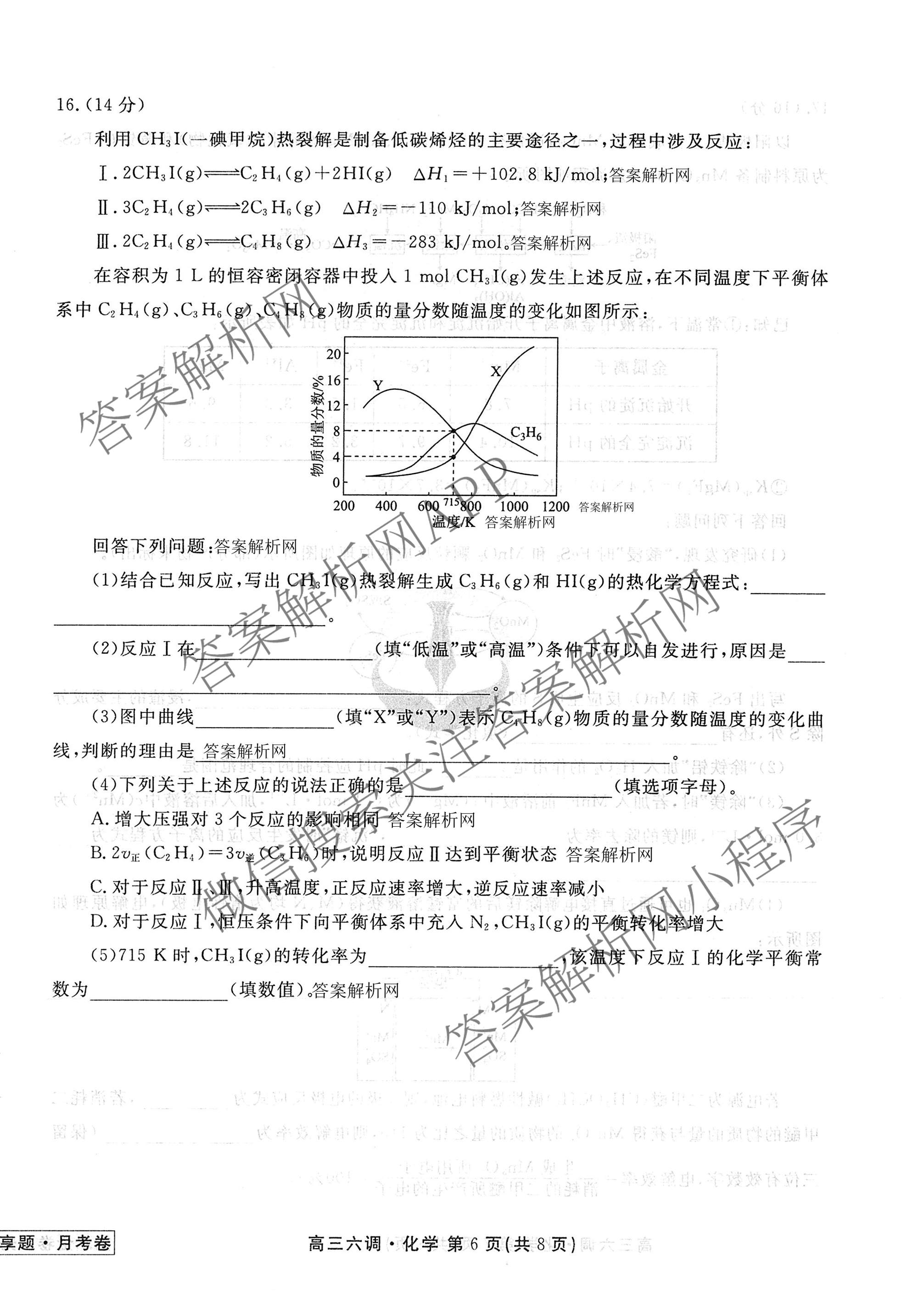 衡水金卷先享题·月考卷·2025-2026学年度上学期高三年级六调考试化学试题,目前衡水金卷先享题答案网已经汇总了衡水金卷先享题·月考卷·2025-2026学年度上学期高三年级六调考试化学试题的各科答案和试卷,获取更多衡水金卷先享题答案解析,请在关注本站。