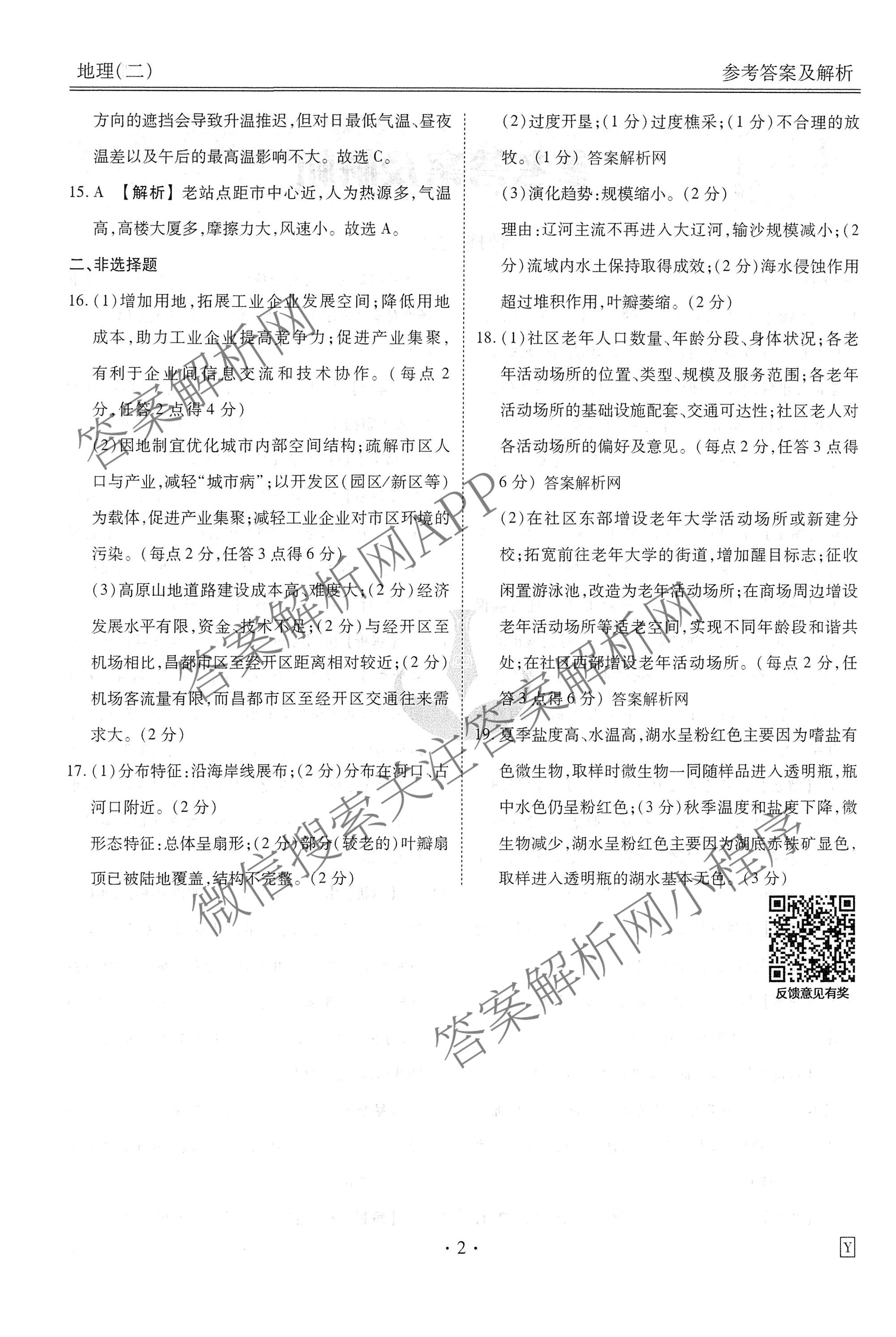 - [衡水金卷先享题]调研卷2026年普通高中学业水平选择性考试模拟试题(二)2地理(Q)答案