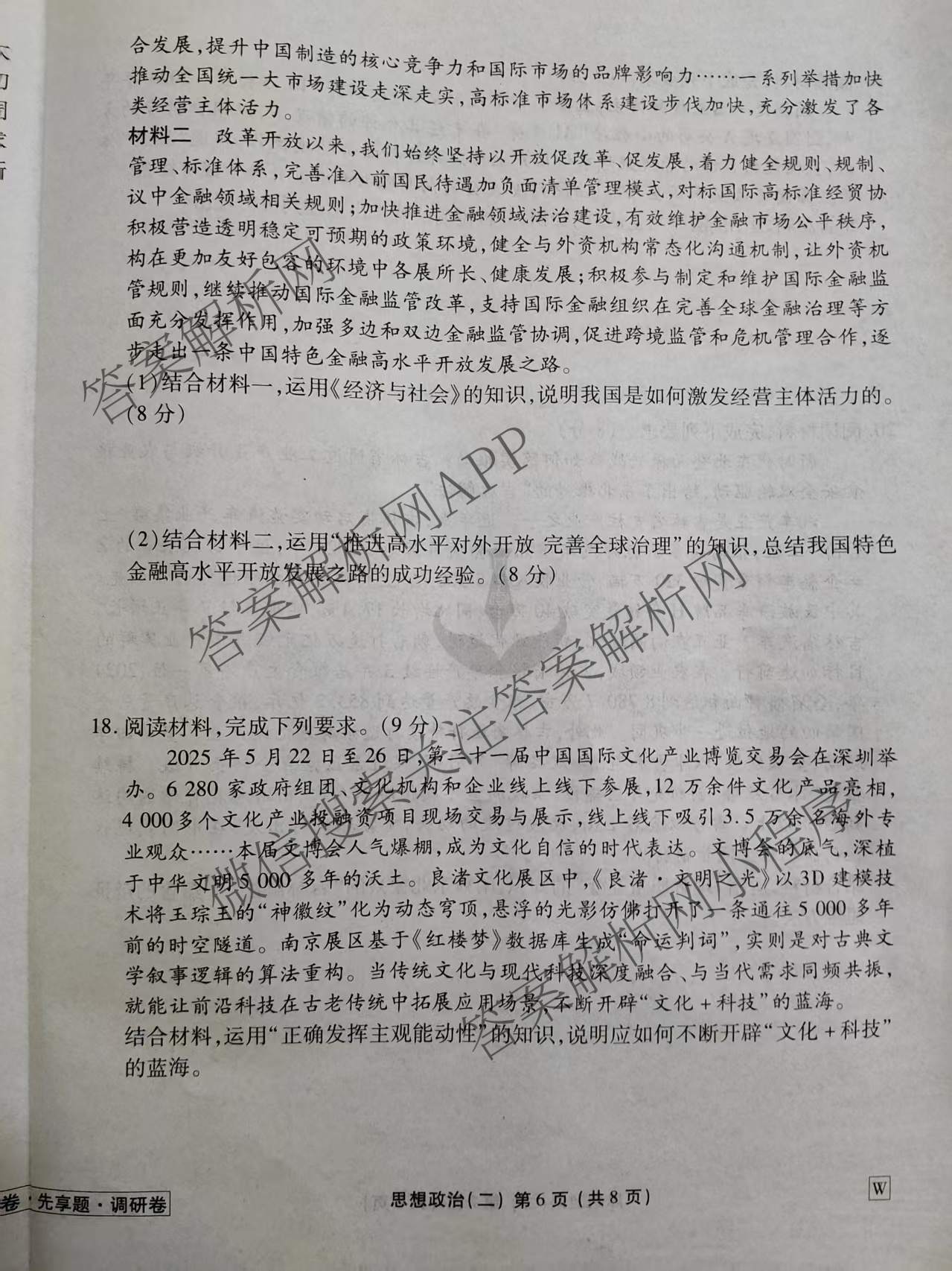 衡水金卷先享题·调研卷·2026年普通高中学业水平选择性考试模拟试题(二)2政治(W)试题,目前衡水金卷先享题答案网已经汇总了衡水金卷先享题·调研卷·2026年普通高中学业水平选择性考试模拟试题(二)2政治(W)试题的各科答案和试卷,获取更多衡水金卷先享题答案解析,请在关注本站。