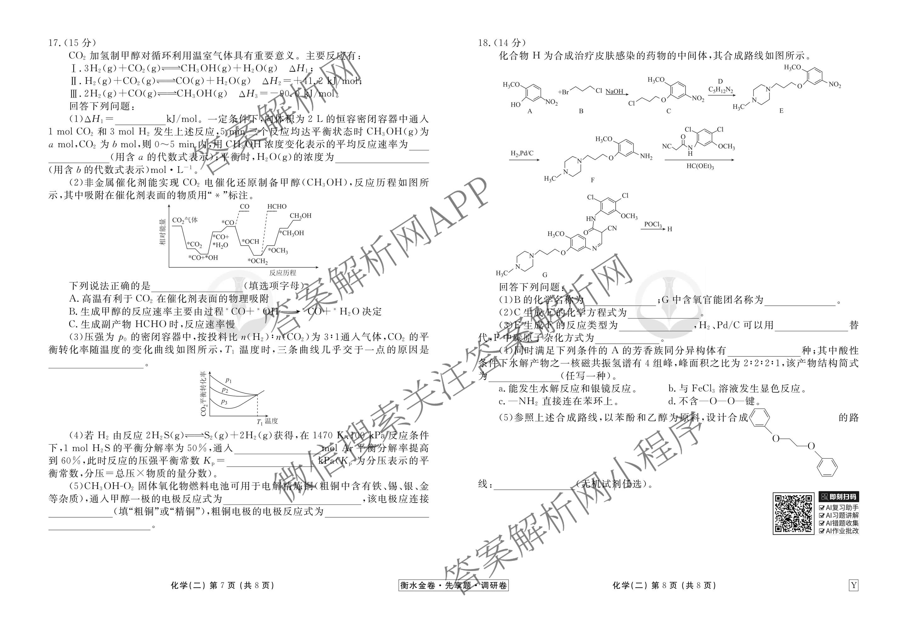 - (高三)(衡水金卷先享题)·调研卷·2026年普通高中学业水平选择性考试模拟试题(二)2化学(Q)答案