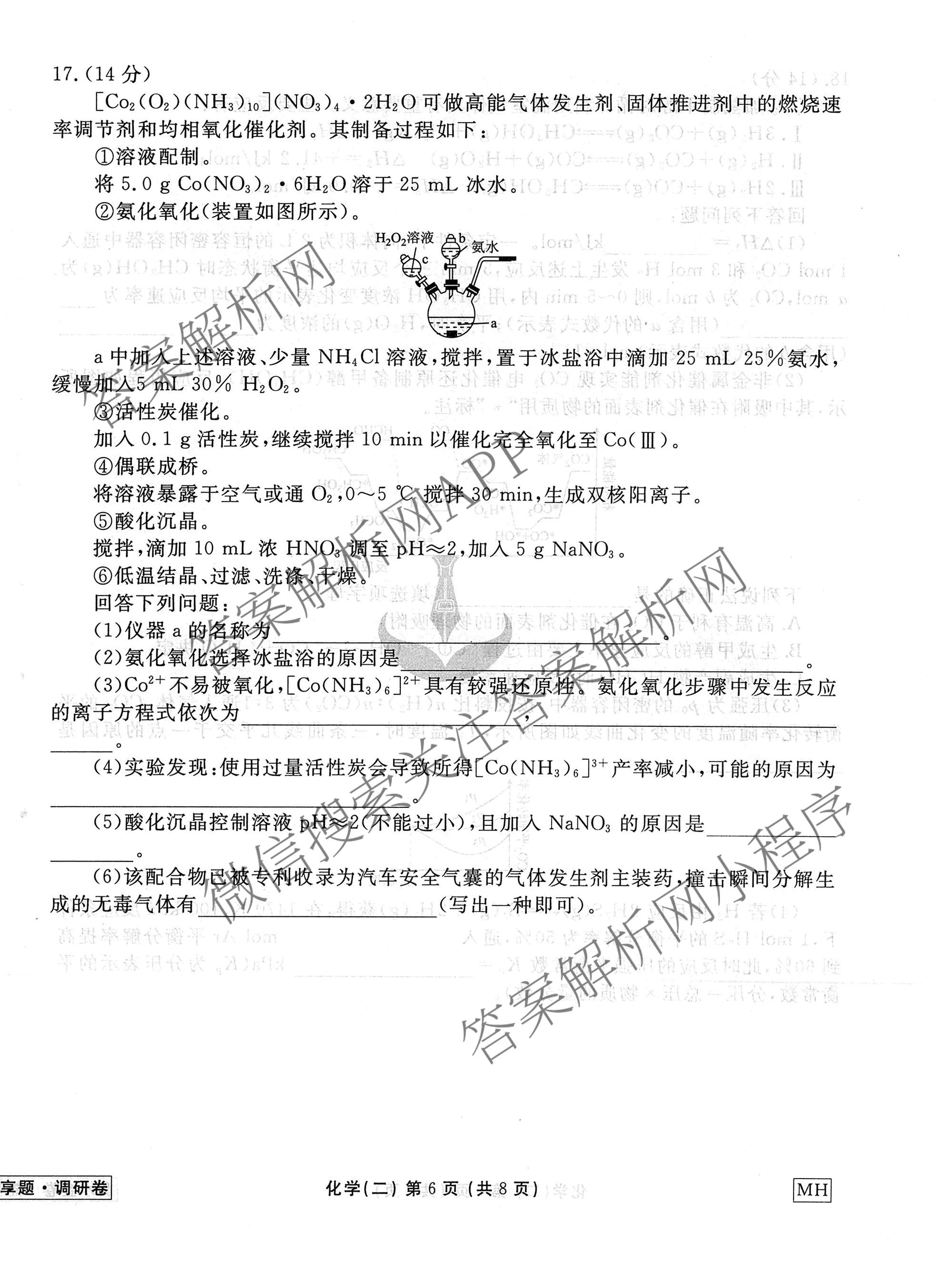 衡水金卷先享题·调研卷·2026年普通高中学业水平选择性考试模拟(二)2化学(MH)试题,目前衡水金卷先享题答案网已经汇总了衡水金卷先享题·调研卷·2026年普通高中学业水平选择性考试模拟(二)2化学(MH)试题的各科答案和试卷,获取更多衡水金卷先享题答案解析,请在关注本站。