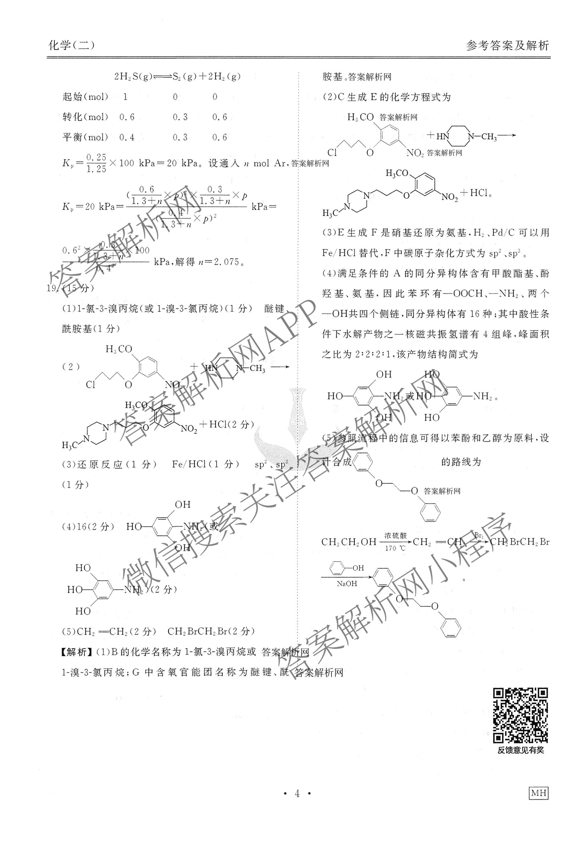 - (衡水金卷先享题)调研卷2026年普通高中学业水平选择性考试模拟试题(二)2化学(GS)答案