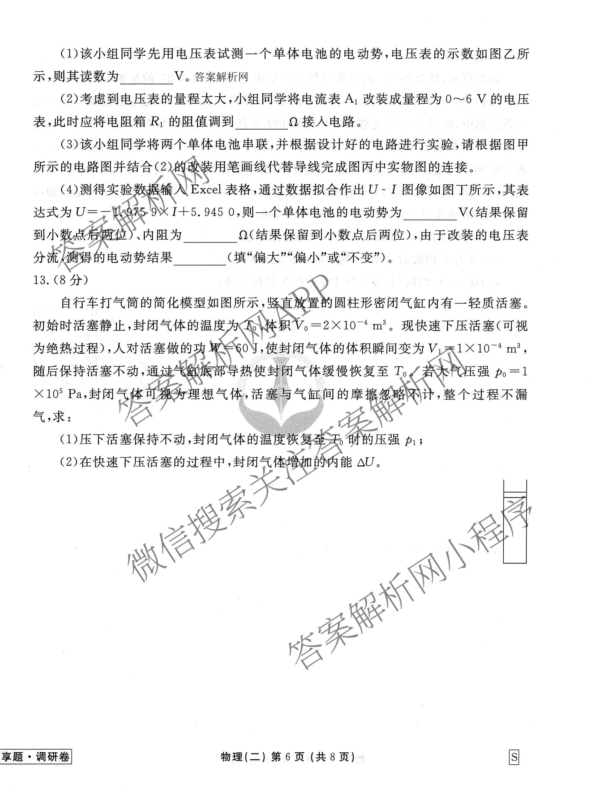 衡水金卷先享题·调研卷·2026年普通高中学业水平选择性考试模拟(二)2物理(S)试题,目前衡水金卷先享题答案网已经汇总了衡水金卷先享题·调研卷·2026年普通高中学业水平选择性考试模拟(二)2物理(S)试题的各科答案和试卷,获取更多衡水金卷先享题答案解析,请在关注本站。