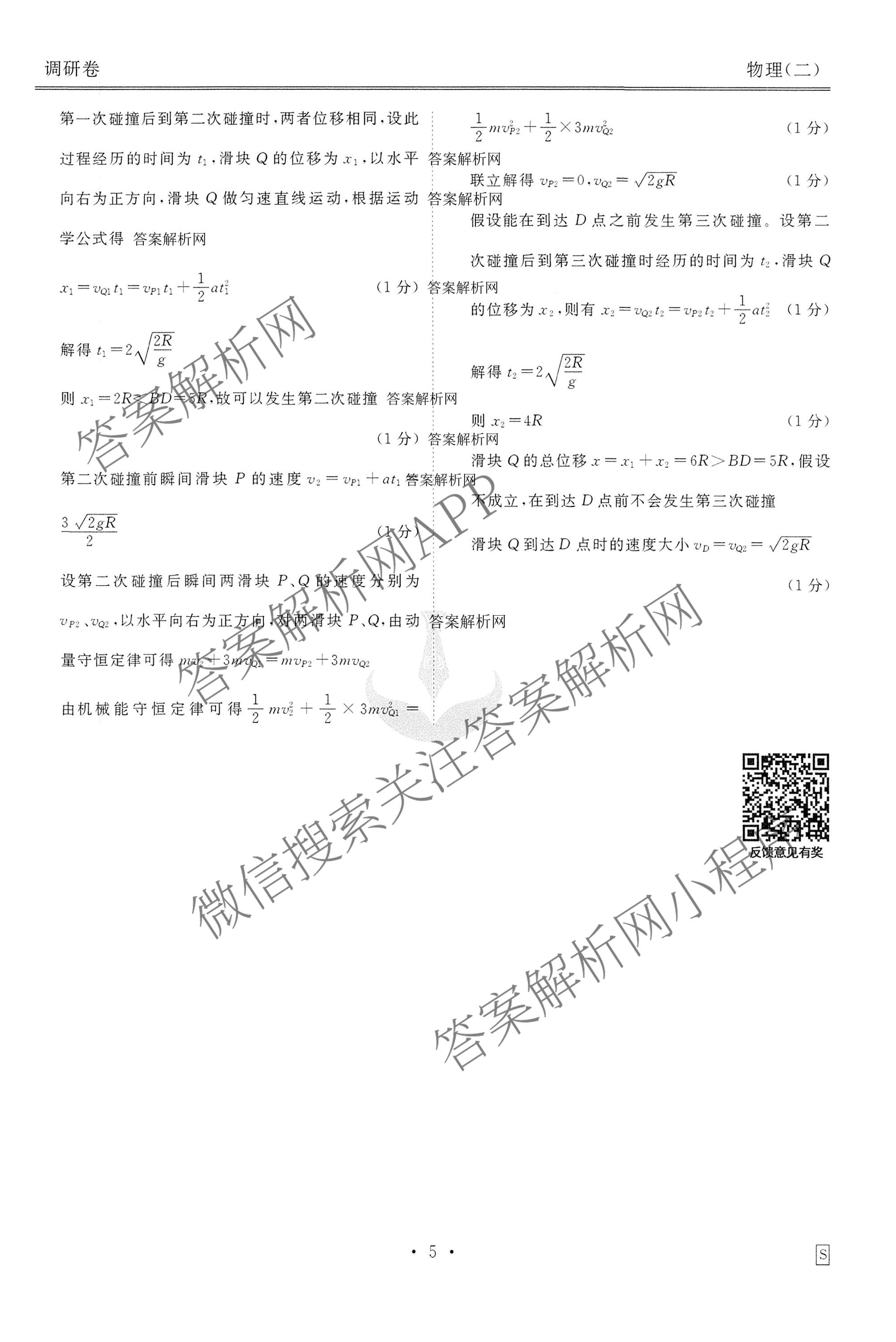 [高三]衡水金卷先享题·调研卷·2026年普通高中学业水平选择性考试模拟(二)2物理(S)答案