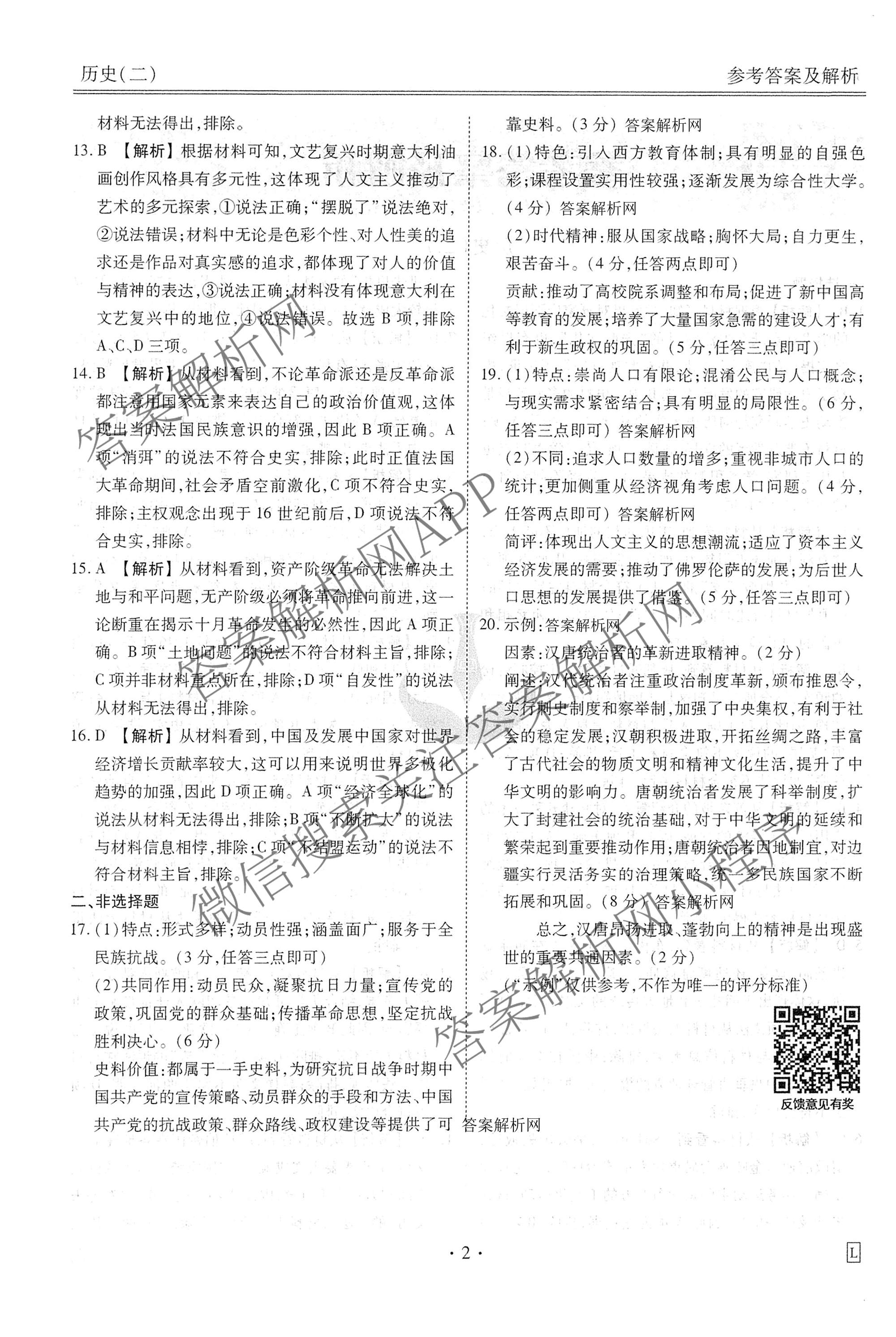 - [衡水金卷先享题]调研卷2026年普通高中学业水平选择性考试模拟试题(二)2历史(HU)答案