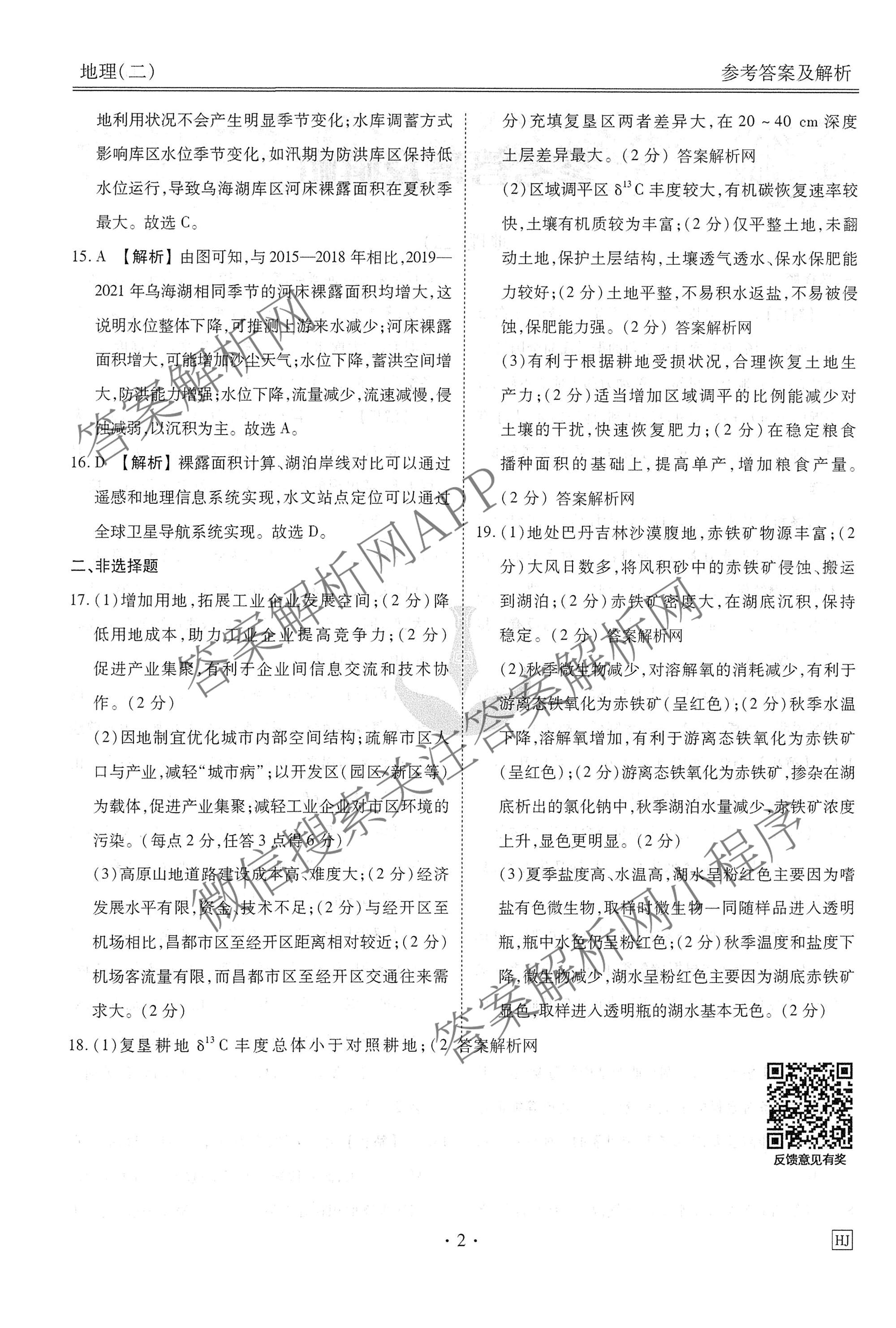 - [衡水金卷先享题]调研卷2026年普通高中学业水平选择性考试模拟试题(二)2地理(HJ)答案