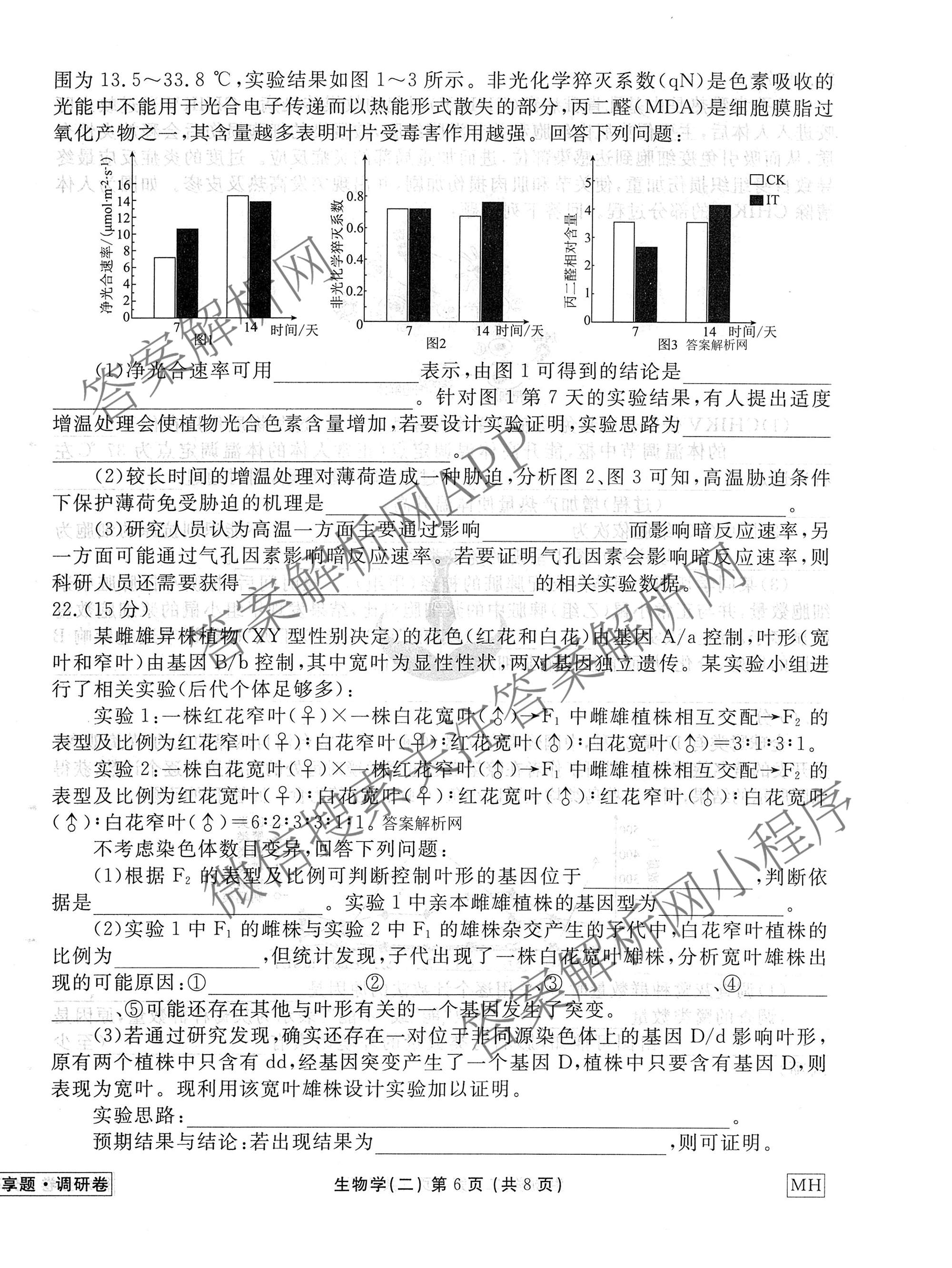 衡水金卷先享题·调研卷·2026年普通高中学业水平选择性考试模拟(二)2生物(MH)试题,目前衡水金卷先享题答案网已经汇总了衡水金卷先享题·调研卷·2026年普通高中学业水平选择性考试模拟(二)2生物(MH)试题的各科答案和试卷,获取更多衡水金卷先享题答案解析,请在关注本站。