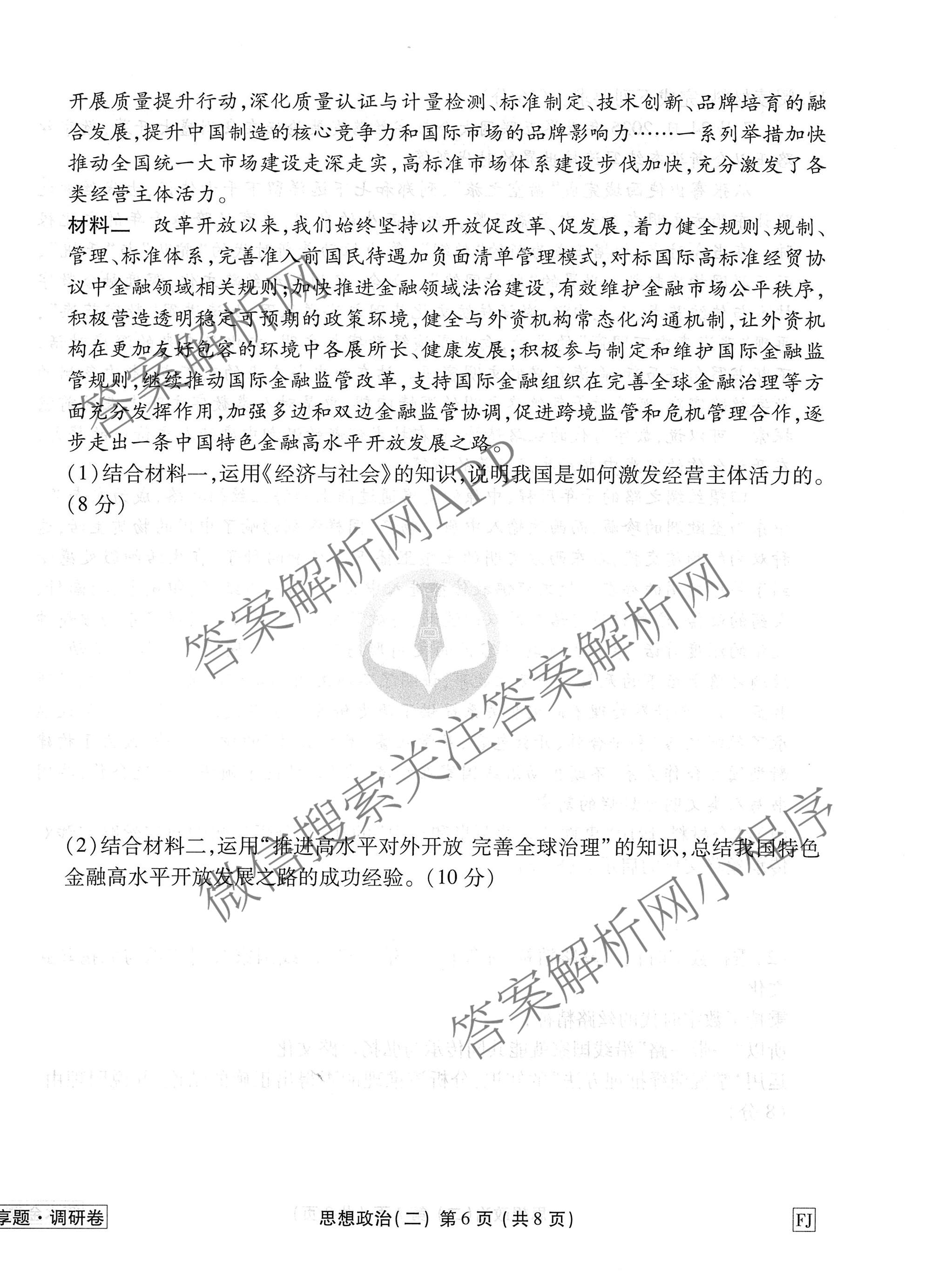 - (衡水金卷先享题)调研卷2026年普通高中学业水平选择性考试模拟(二)2政治(FJ)答案