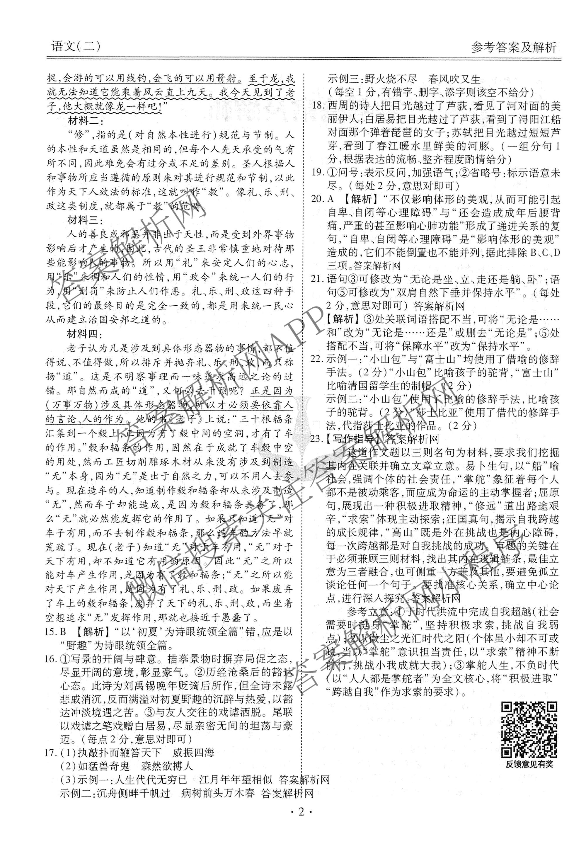 [衡水金卷先享题]调研卷2026年普通高等学校招生全国统一考试模拟试题(二)2语文答案