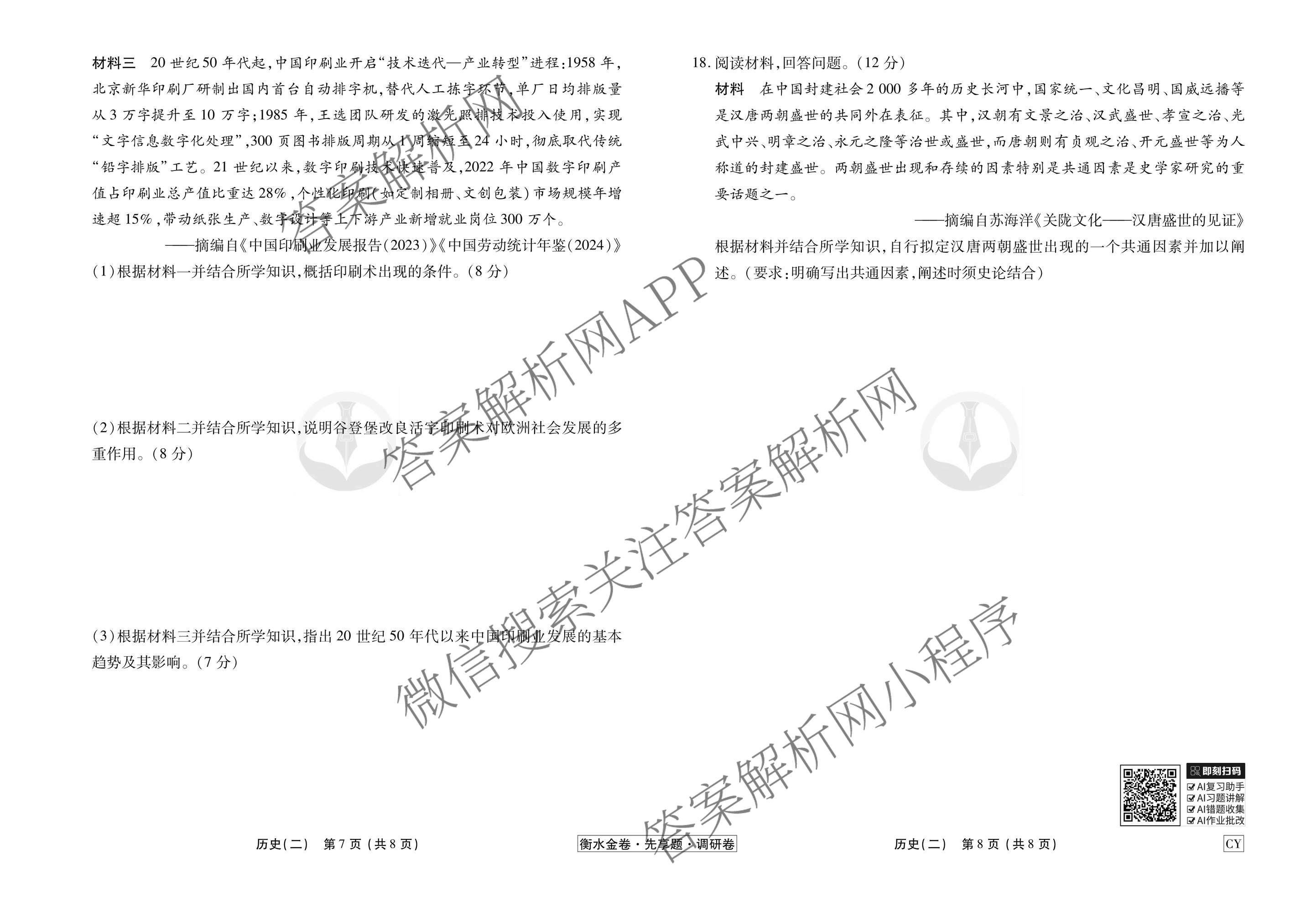 衡水金卷先享题·调研卷·2026年普通高中学业水平选择性考试模拟试题(二)2历史(CY)试题,目前衡水金卷先享题答案网已经汇总了衡水金卷先享题·调研卷·2026年普通高中学业水平选择性考试模拟试题(二)2历史(CY)试题的各科答案和试卷,获取更多衡水金卷先享题答案解析,请在关注本站。