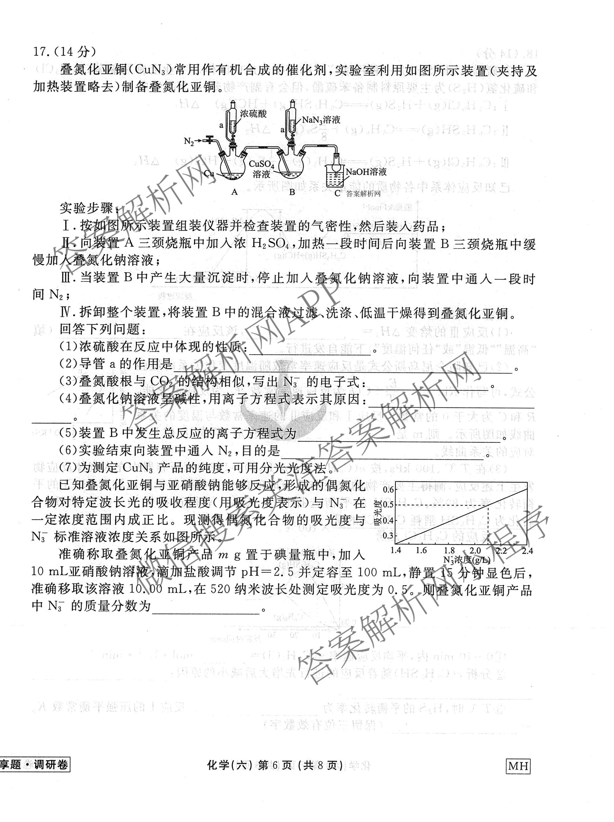 - (衡水金卷先享题)调研卷2026年普通高中学业水平选择性考试模拟试题(六)6化学(AH)答案