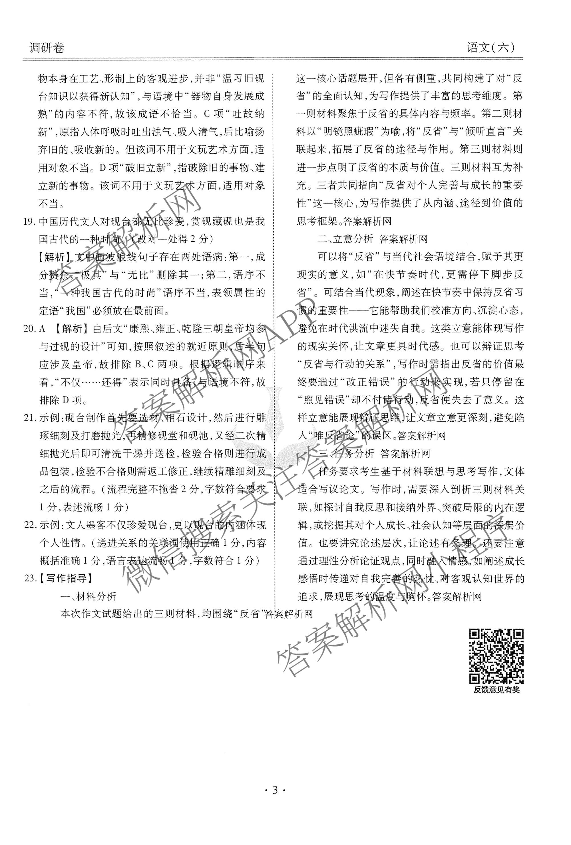 高三(衡水金卷先享题)·调研卷·2026年普通高等学校招生全国统一考试模拟试题(六)6语文答案