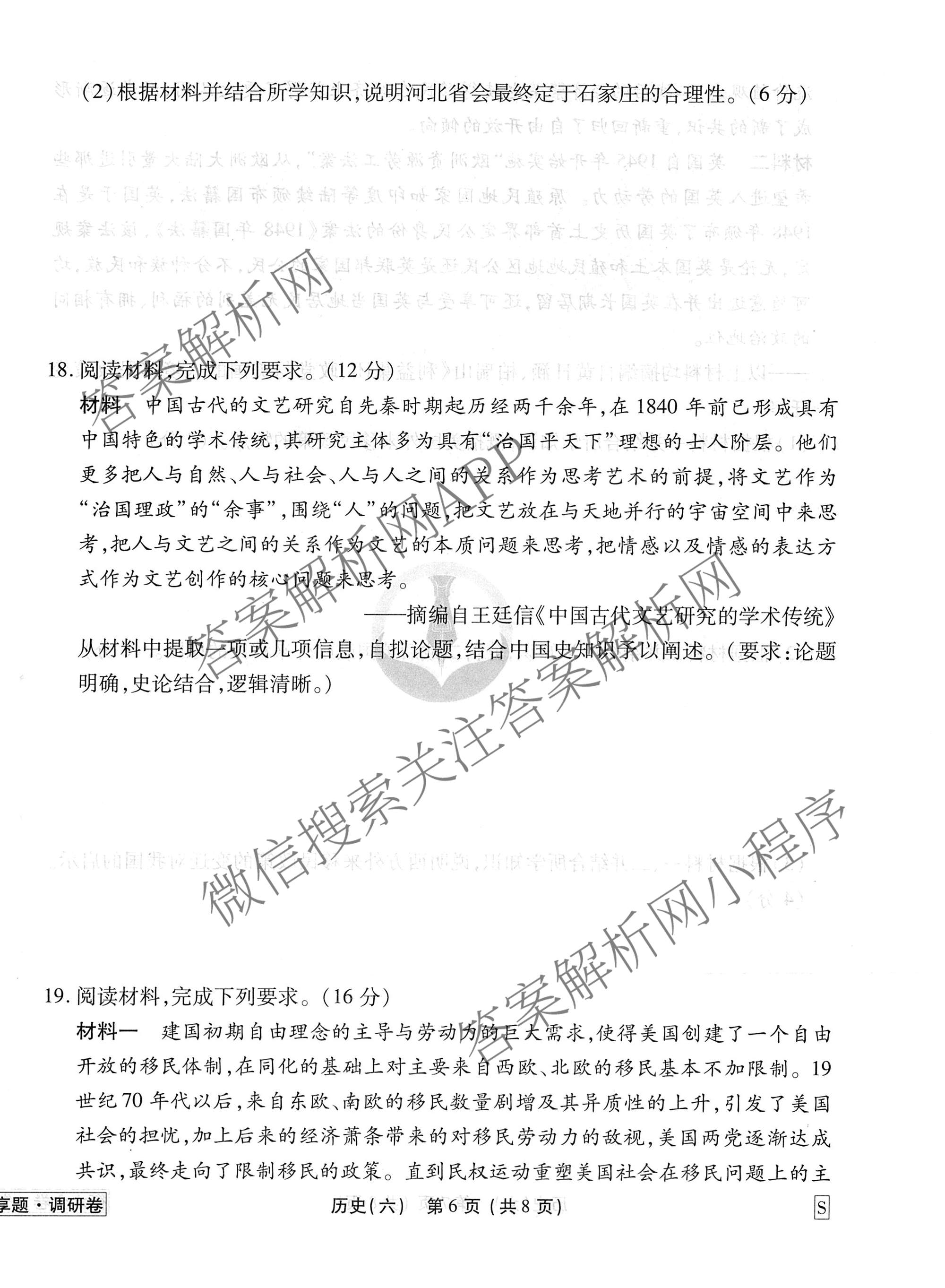 - (高三)衡水金卷先享题·调研卷·2026年普通高中学业水平选择性考试模拟(六)6历史(S)答案