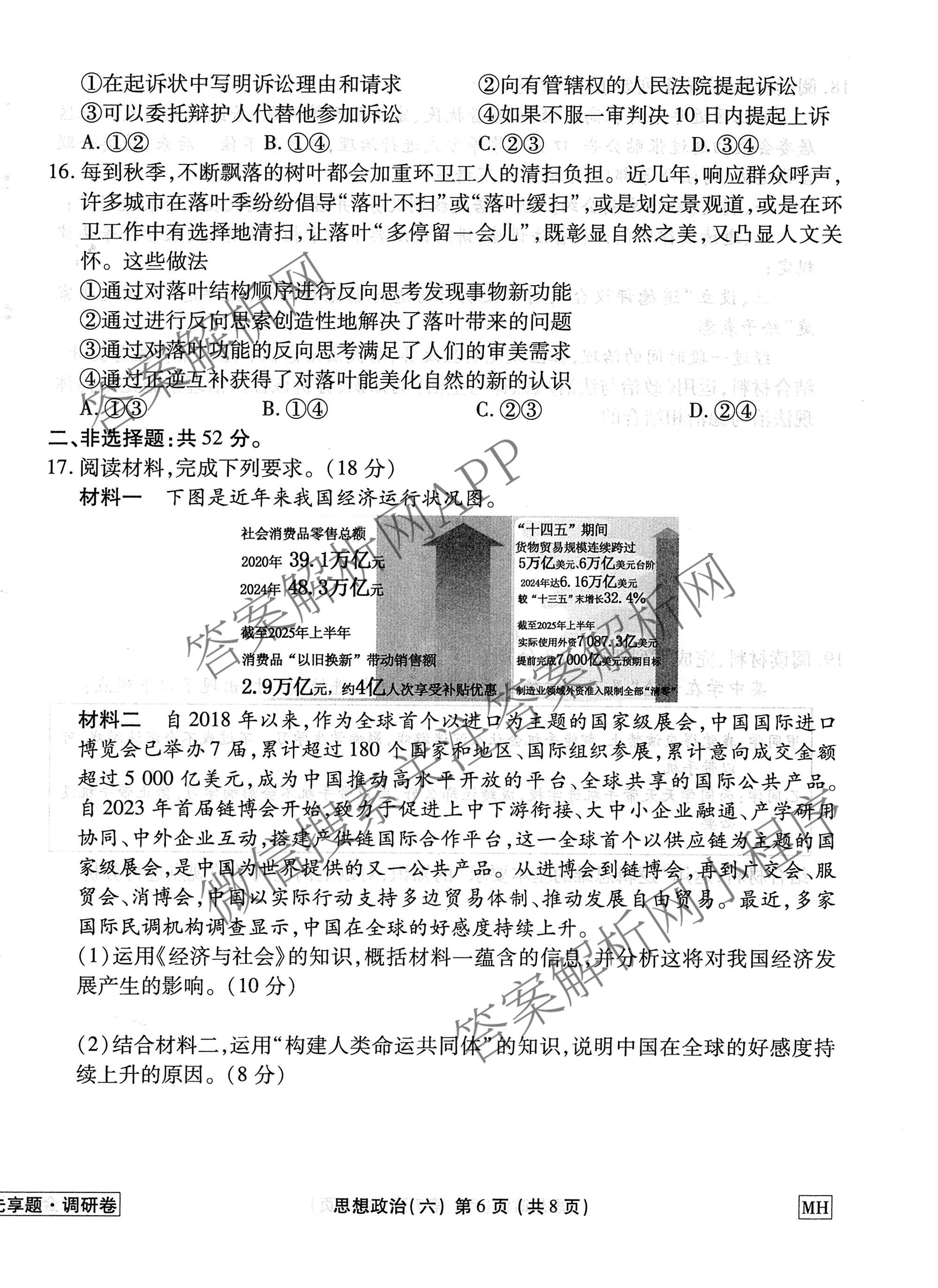 衡水金卷先享题·调研卷·2026年普通高中学业水平选择性考试模拟(六)6政治(MH)试题,目前衡水金卷先享题答案网已经汇总了衡水金卷先享题·调研卷·2026年普通高中学业水平选择性考试模拟(六)6政治(MH)试题的各科答案和试卷,获取更多衡水金卷先享题答案解析,请在关注本站。