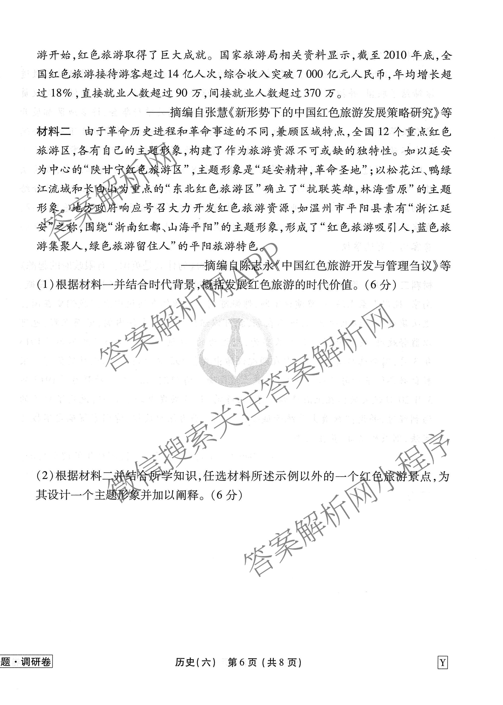 - (衡水金卷先享题)调研卷2026年普通高中学业水平选择性考试模拟试题(六)6历史(YN)答案
