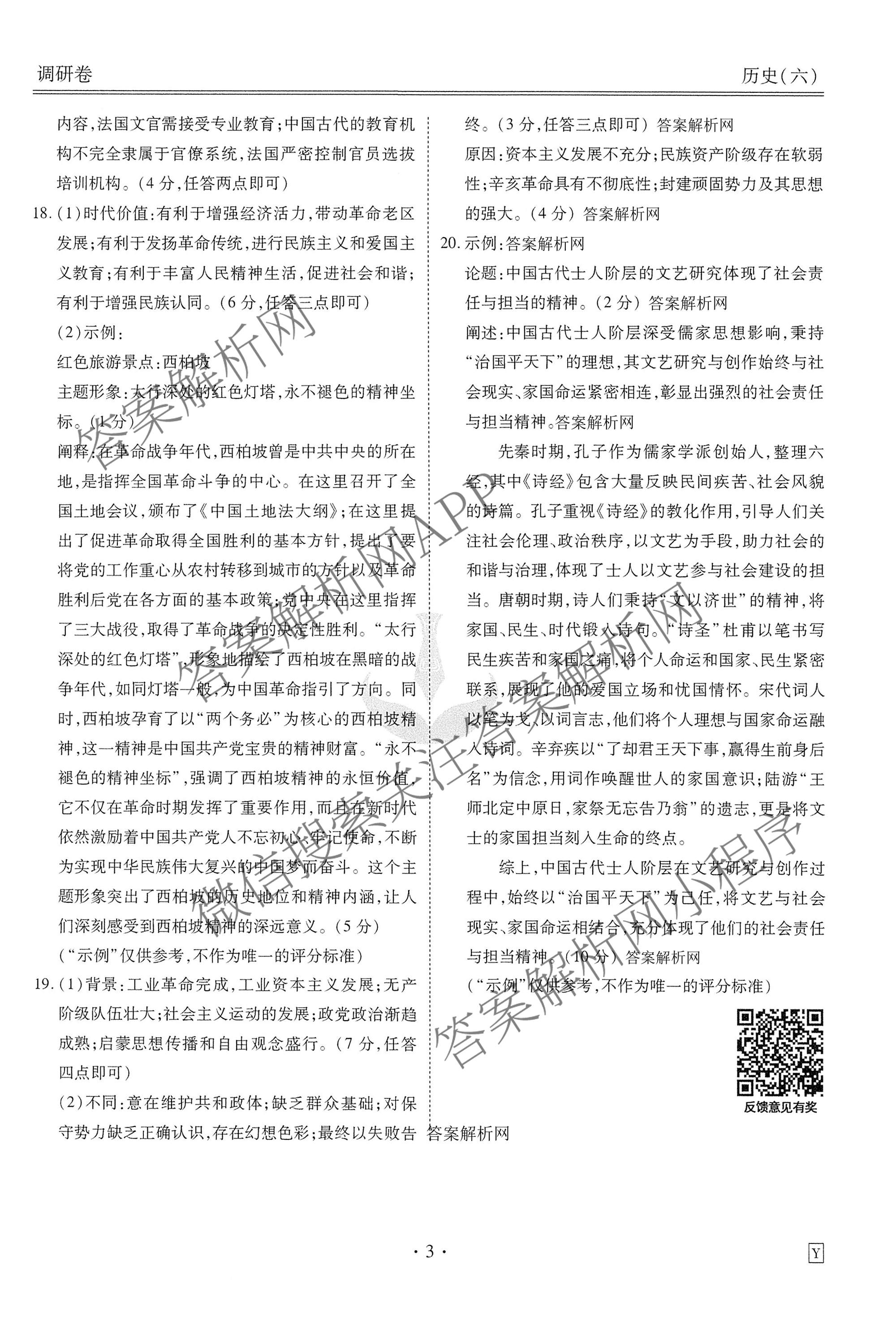 - [衡水金卷先享题]·调研卷·2026年普通高中学业水平选择性考试模拟试题(六)6历史(JS)答案
