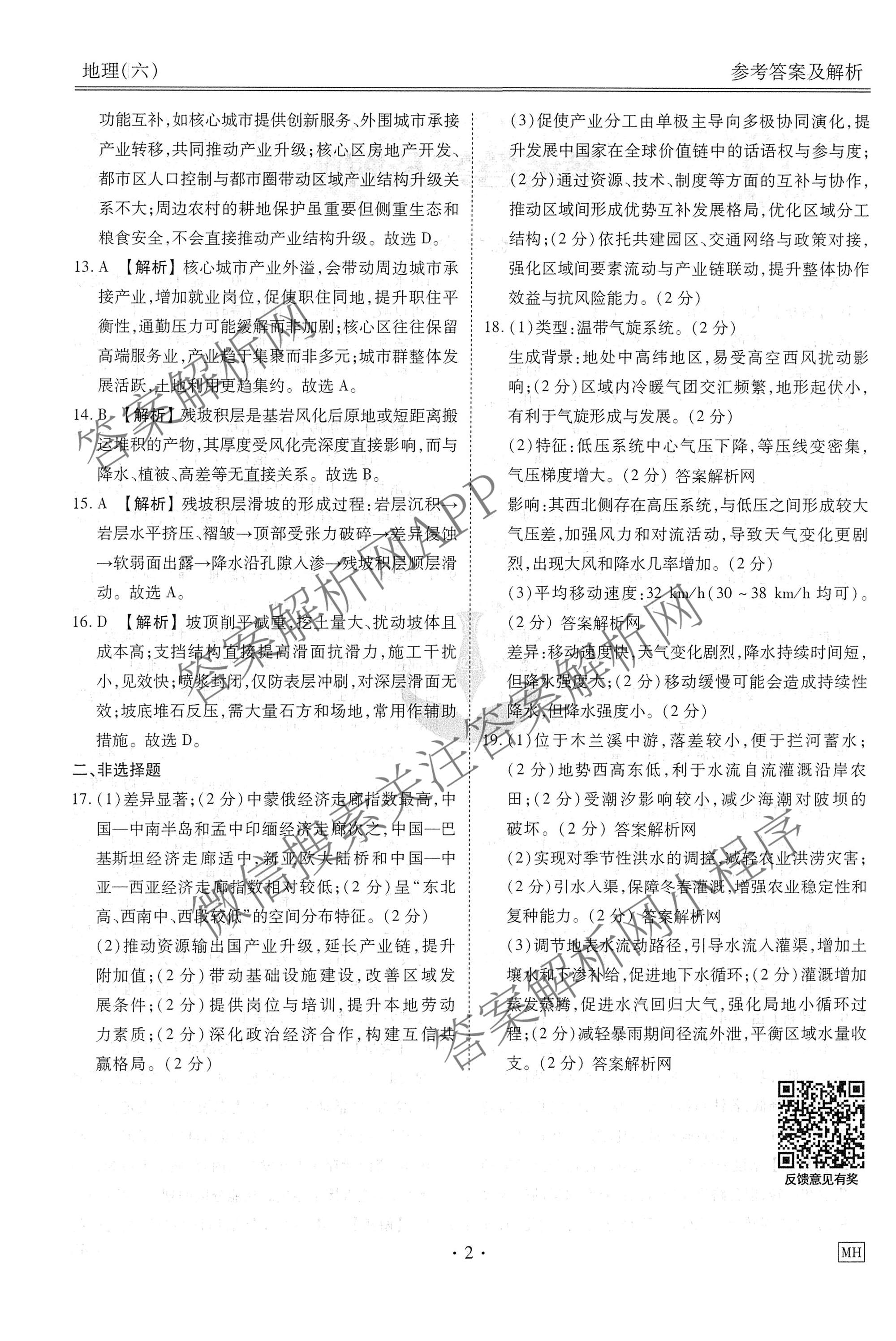 (高三)[衡水金卷先享题]调研卷2026年普通高中学业水平选择性考试模拟(六)6地理(MH)答案