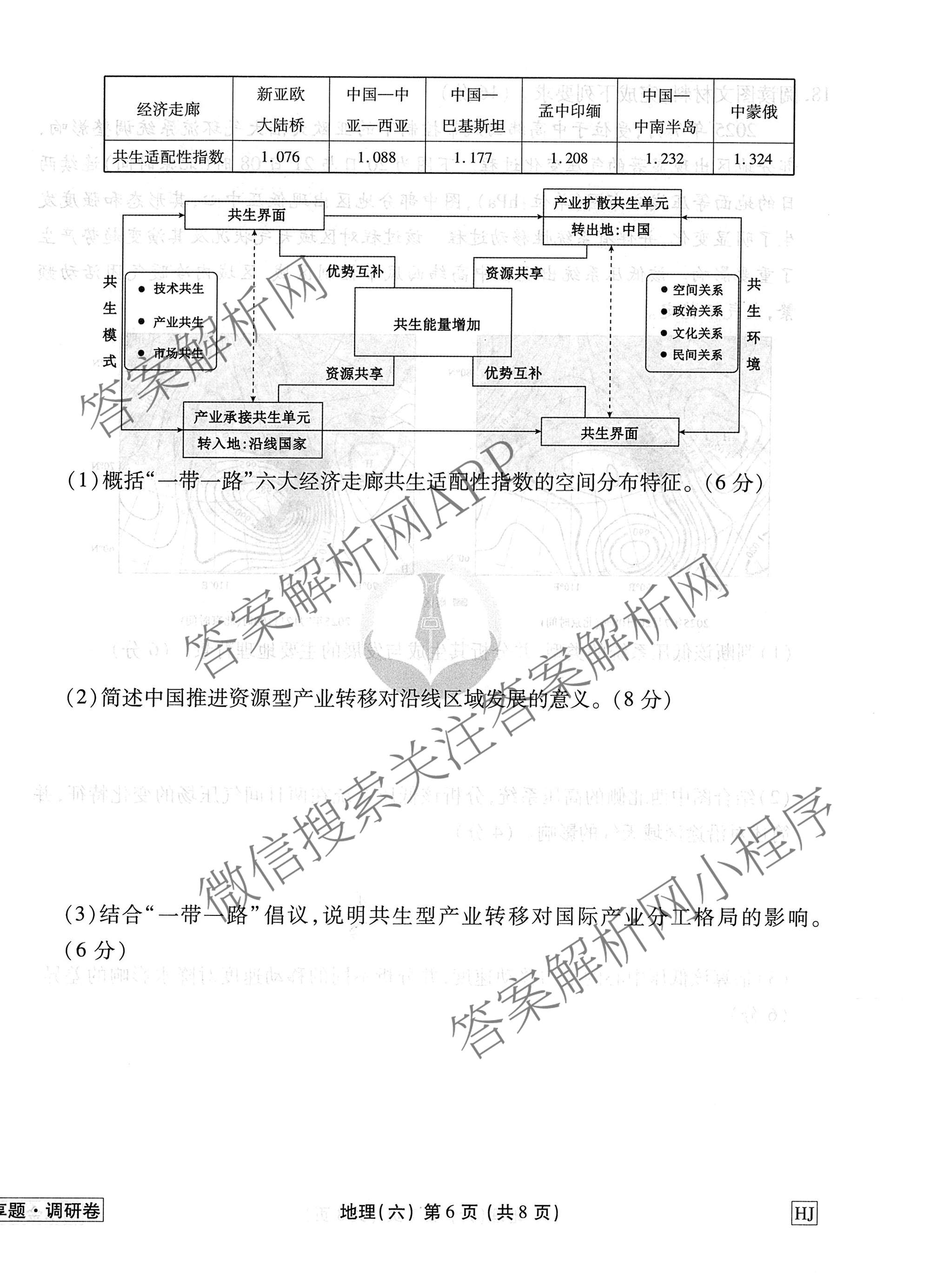 - [衡水金卷先享题]调研卷2026年普通高中学业水平选择性考试模拟试题(六)6地理(HJ)答案