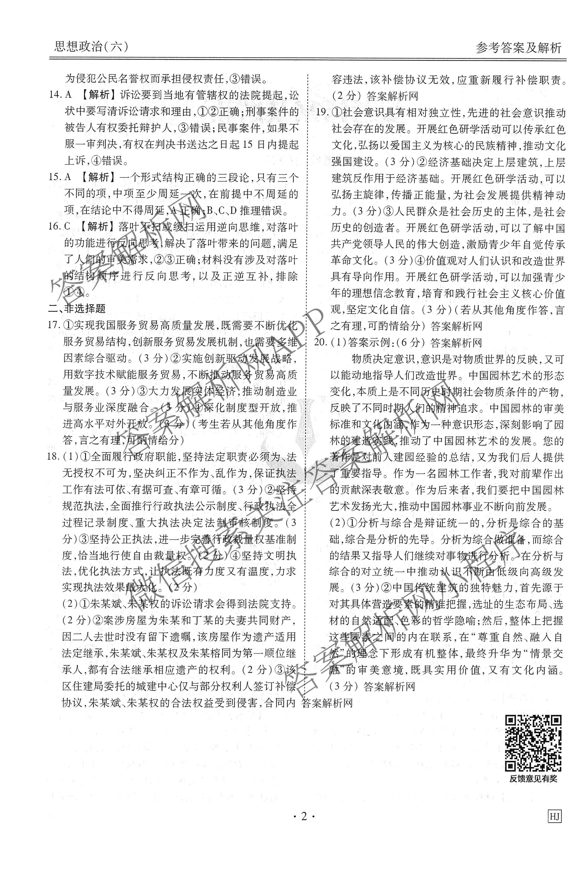 (衡水金卷先享题)调研卷2026年普通高中学业水平选择性考试模拟(六)6政治(HJ)答案