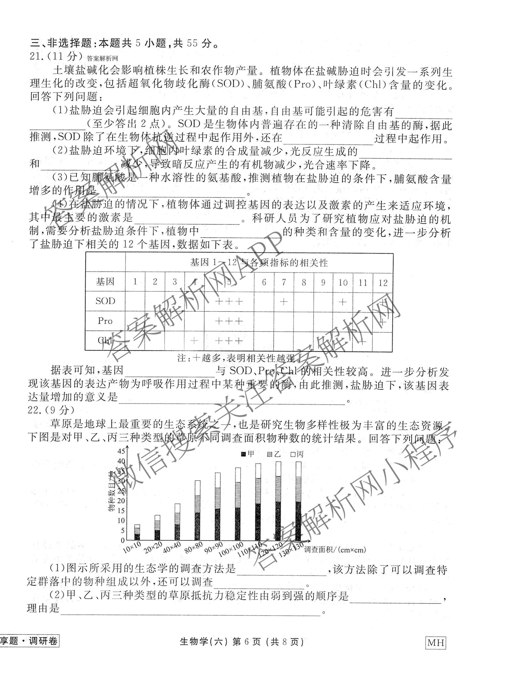 衡水金卷先享题·调研卷·2026年普通高中学业水平选择性考试模拟(六)6生物(MH)试题,目前衡水金卷先享题答案网已经汇总了衡水金卷先享题·调研卷·2026年普通高中学业水平选择性考试模拟(六)6生物(MH)试题的各科答案和试卷,获取更多衡水金卷先享题答案解析,请在关注本站。