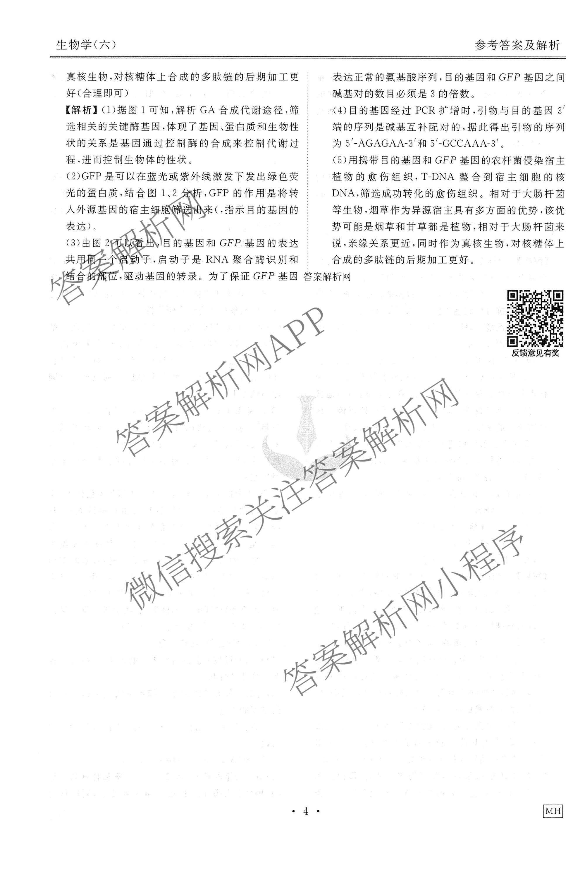 [高三](衡水金卷先享题)调研卷2026年普通高中学业水平选择性考试模拟(六)6生物(MH)答案