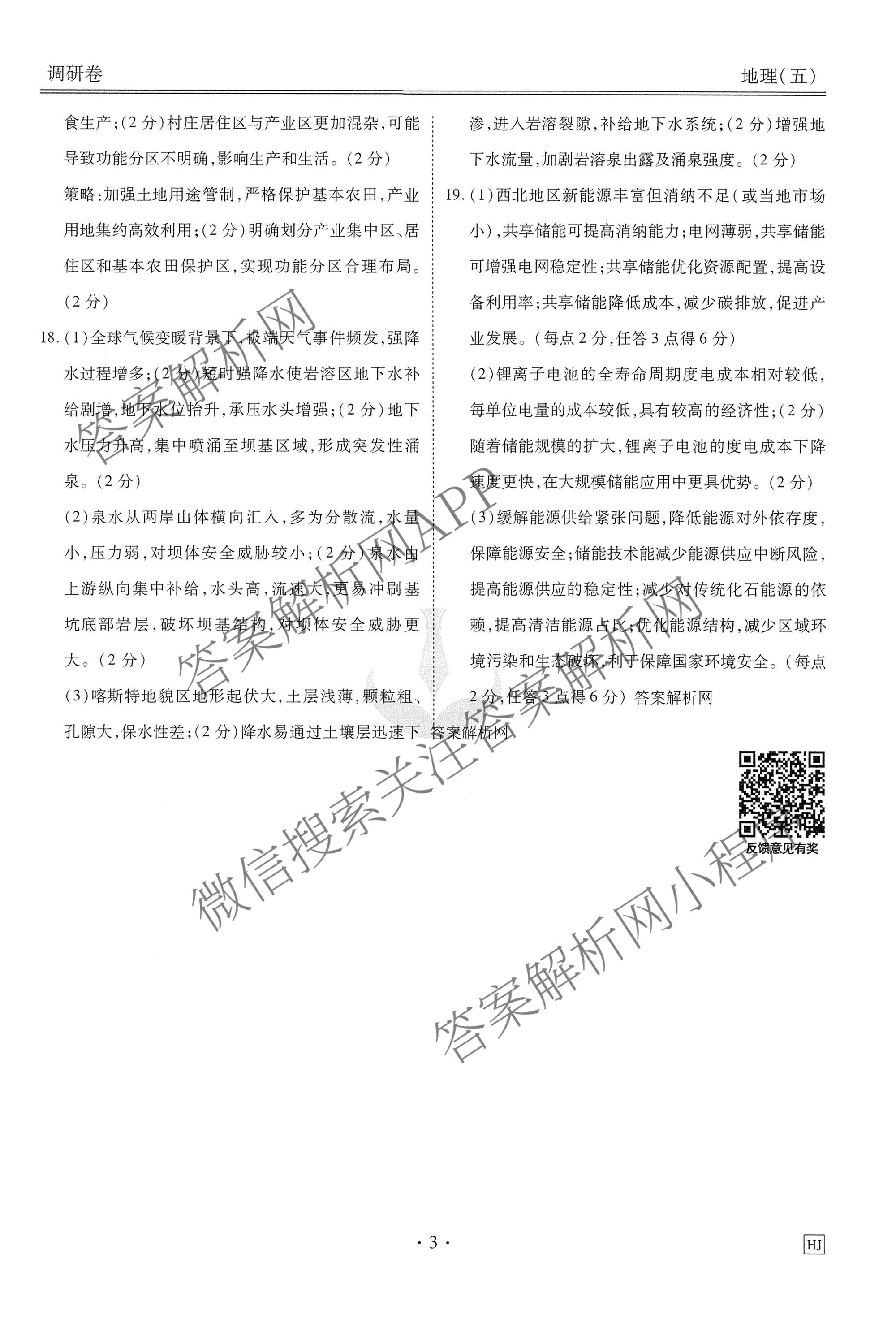 - (衡水金卷先享题)调研卷2026年普通高中学业水平选择性考试模拟试题(五)5地理(JS)答案