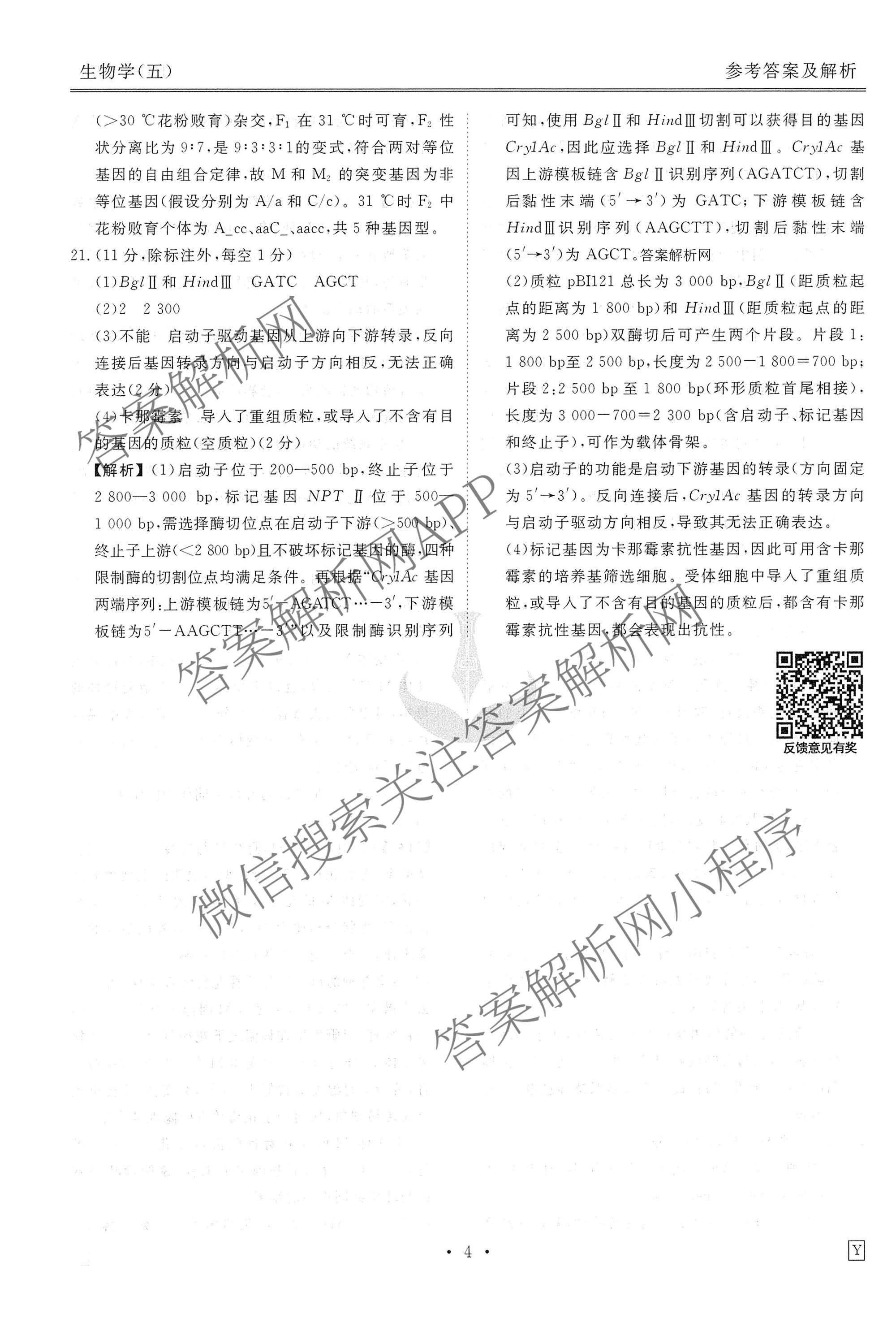 [高三][衡水金卷先享题]·调研卷·2026年普通高中学业水平选择性考试模拟(五)5生物(Y)答案