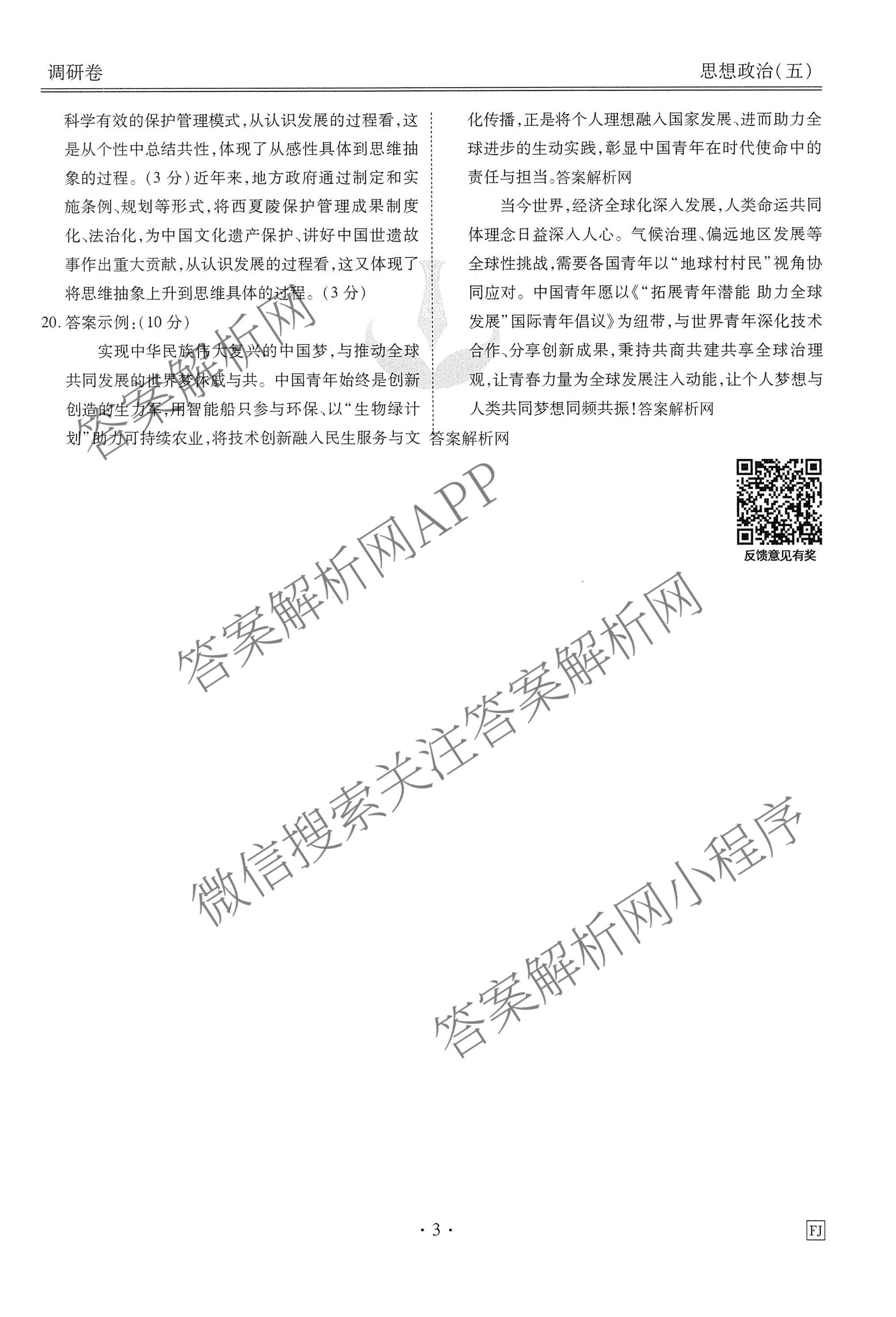 - (高三)(衡水金卷先享题)·调研卷·2026年普通高中学业水平选择性考试模拟(五)5政治(FJ)答案