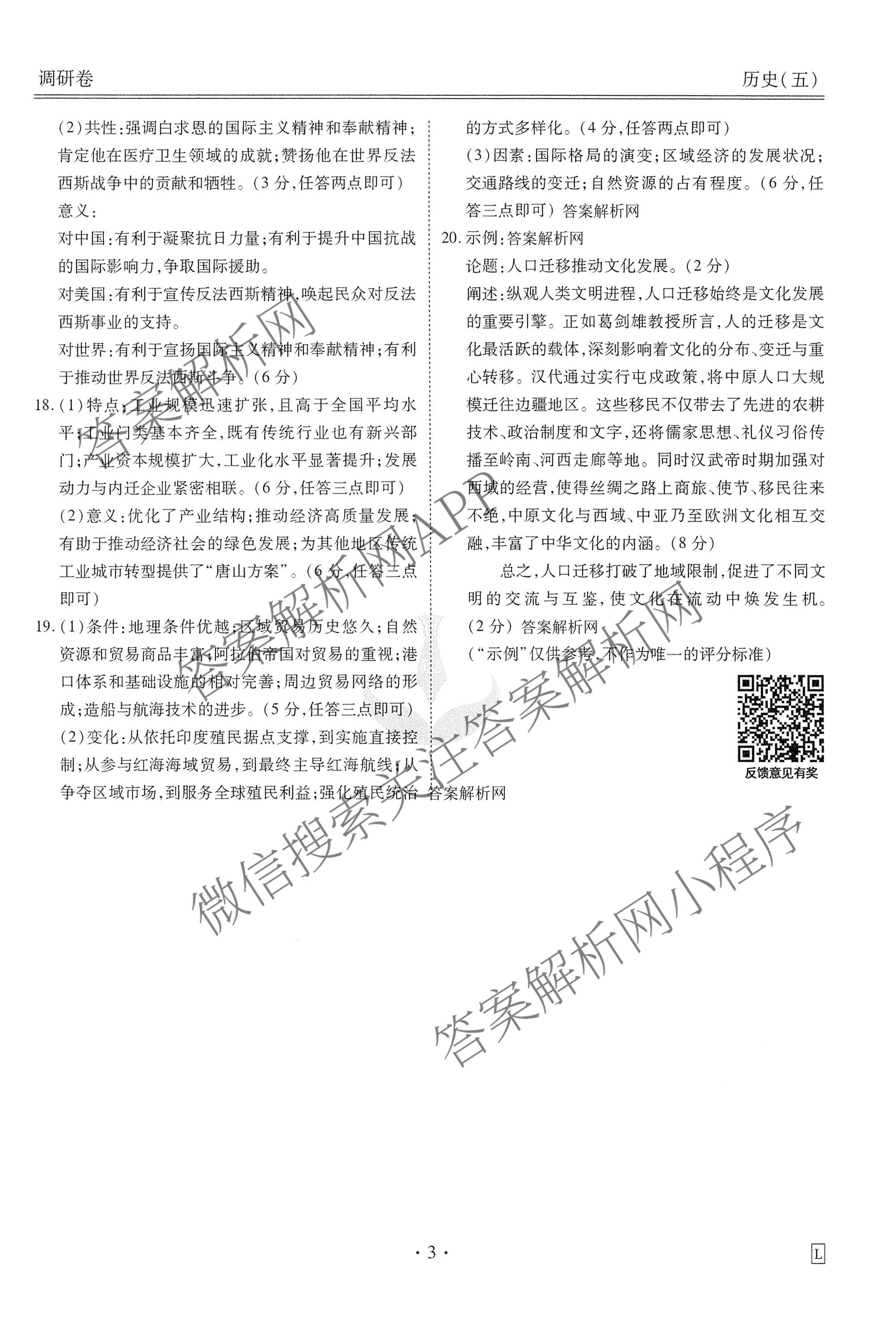 - [衡水金卷先享题]·调研卷·2026年普通高中学业水平选择性考试模拟(五)5历史(L)答案