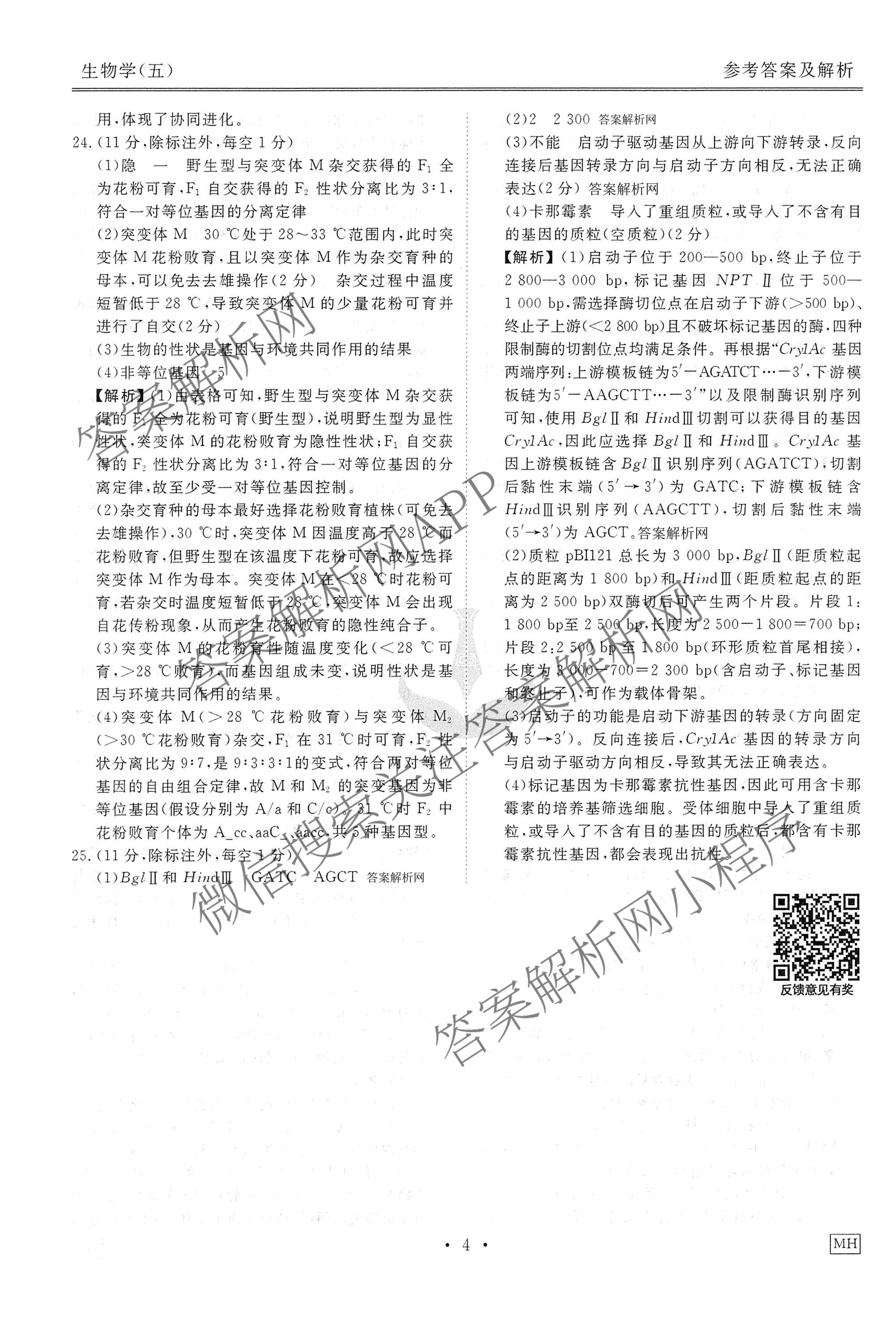 [衡水金卷先享题]调研卷2026年普通高中学业水平选择性考试模拟(五)5生物(MH)答案