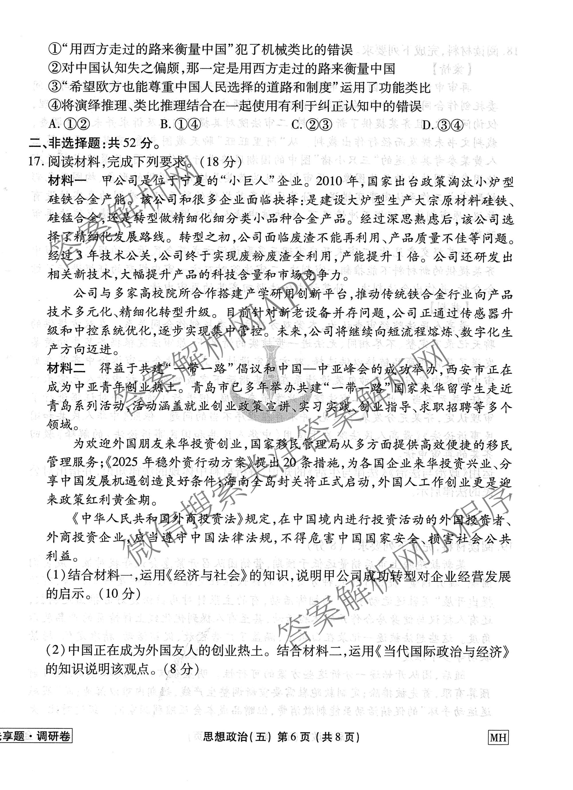 衡水金卷先享题·调研卷·2026年普通高中学业水平选择性考试模拟(五)5政治(MH)试题,目前衡水金卷先享题答案网已经汇总了衡水金卷先享题·调研卷·2026年普通高中学业水平选择性考试模拟(五)5政治(MH)试题的各科答案和试卷,获取更多衡水金卷先享题答案解析,请在关注本站。