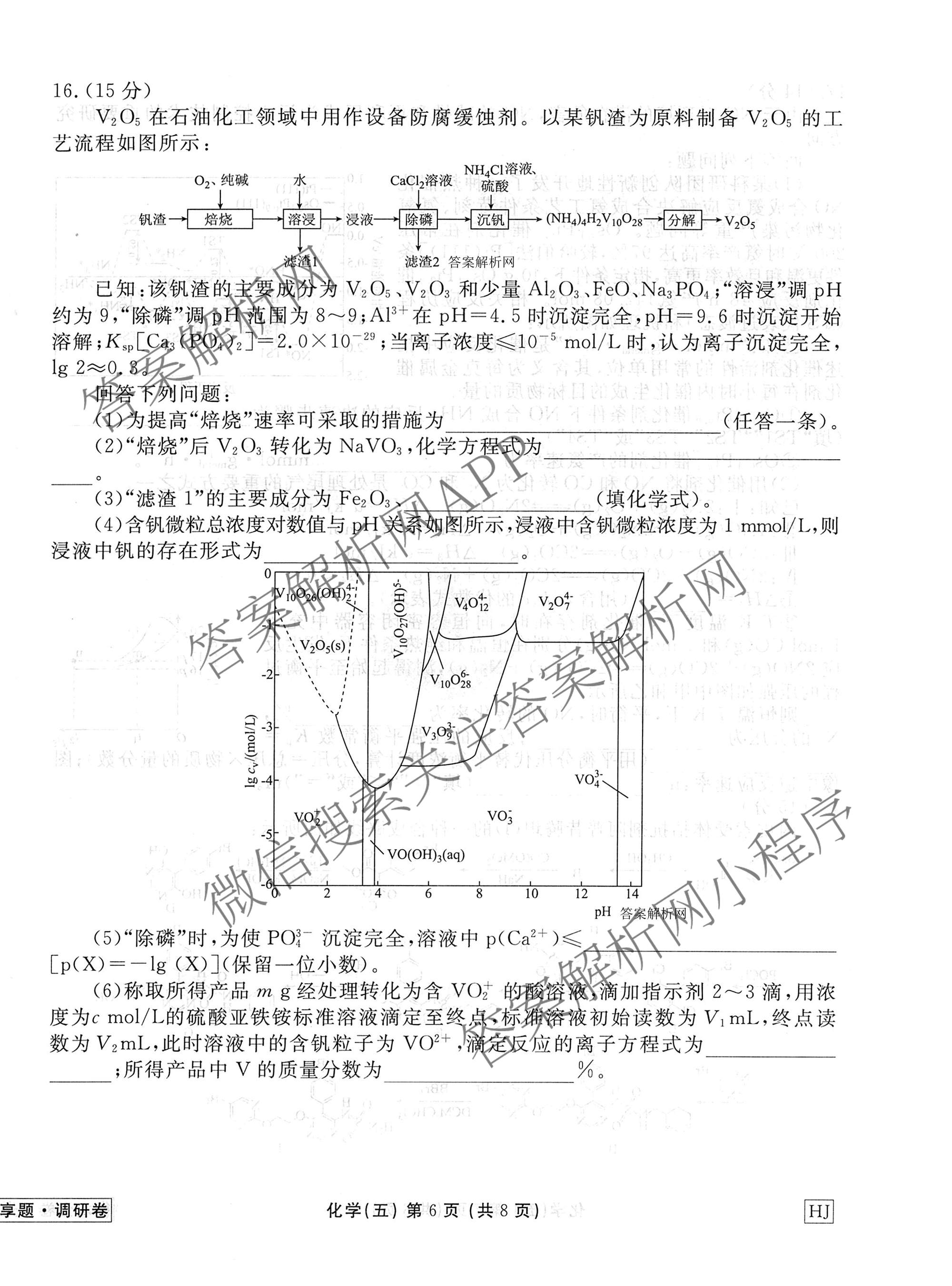 - [衡水金卷先享题]调研卷2026年普通高中学业水平选择性考试模拟试题(五)5化学(HJ)答案