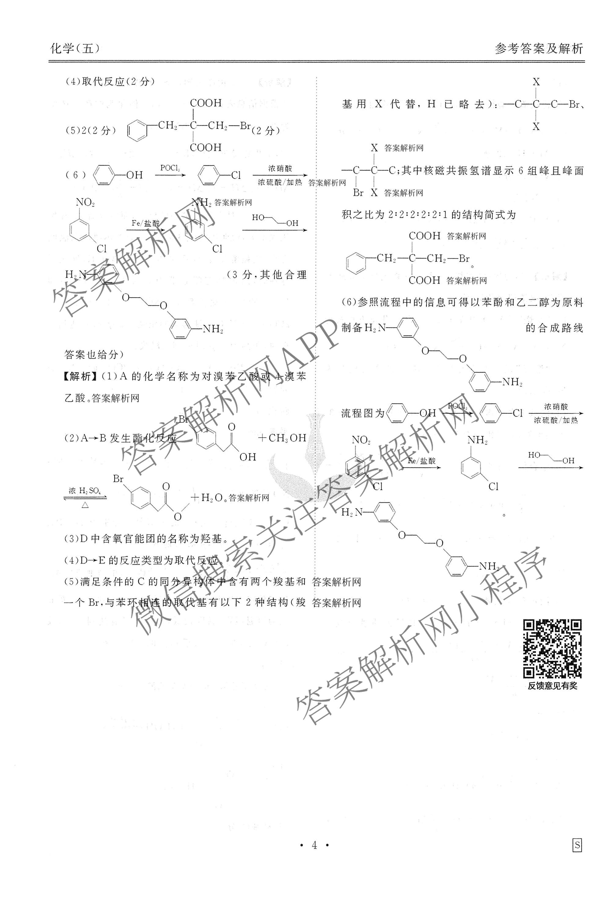 - [高三](衡水金卷先享题)调研卷2026年普通高中学业水平选择性考试模拟(五)5化学(WG)答案