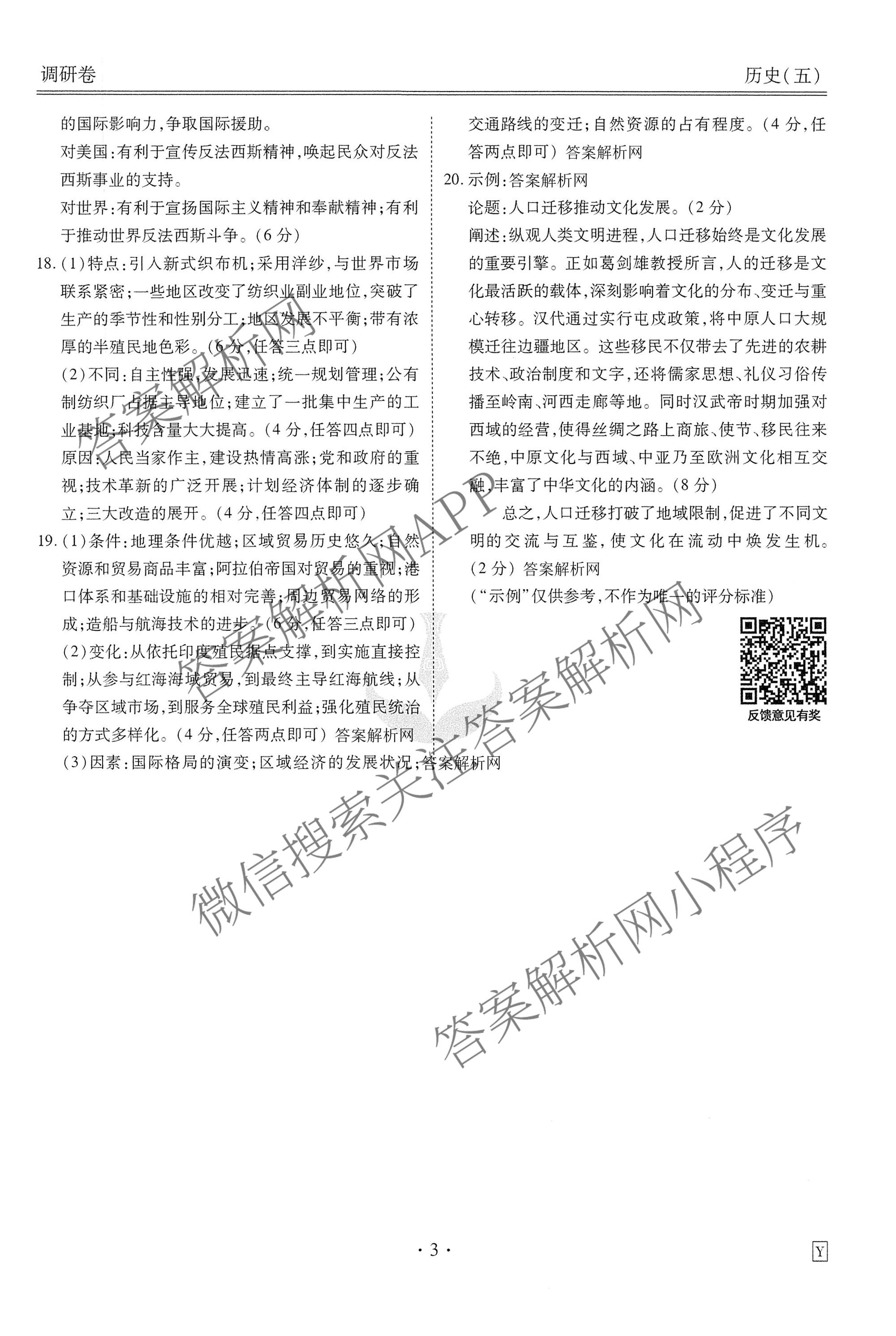 - [高三](衡水金卷先享题)调研卷2026年普通高中学业水平选择性考试模拟(五)5历史(Y)答案