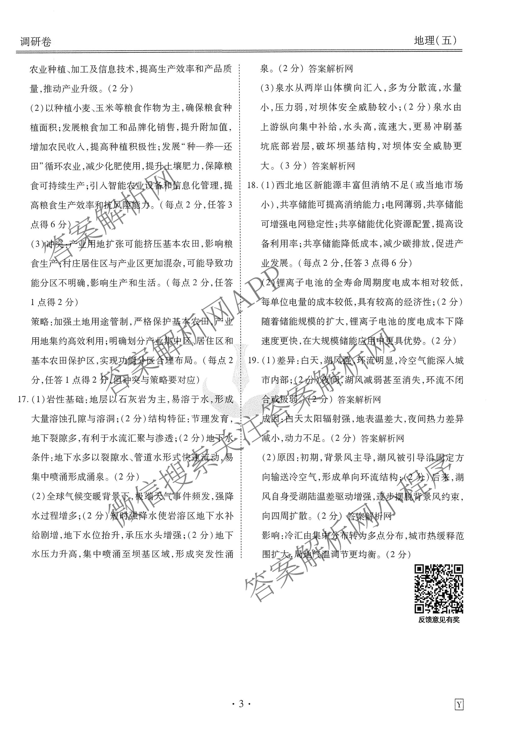 - (衡水金卷先享题)调研卷2026年普通高中学业水平选择性考试模拟试题(五)5地理(JS)答案