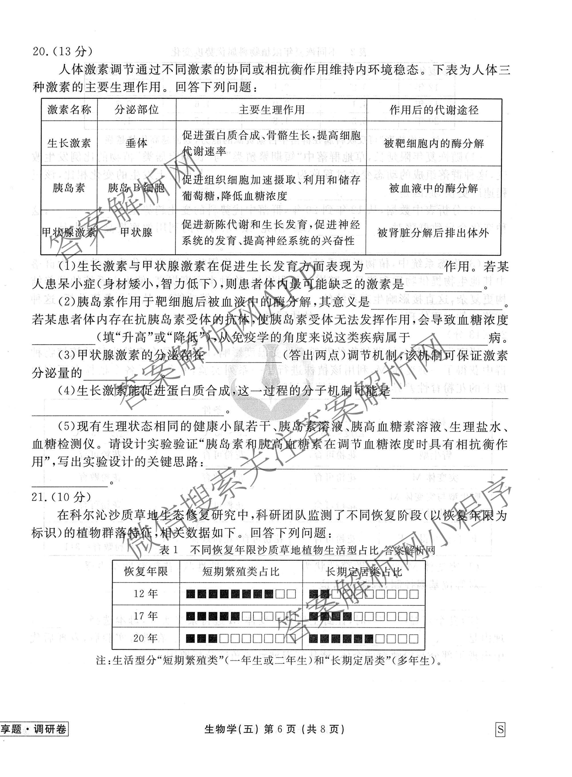 衡水金卷先享题·调研卷·2026年普通高中学业水平选择性考试模拟(五)5生物(S)试题,目前衡水金卷先享题答案网已经汇总了衡水金卷先享题·调研卷·2026年普通高中学业水平选择性考试模拟(五)5生物(S)试题的各科答案和试卷,获取更多衡水金卷先享题答案解析,请在关注本站。