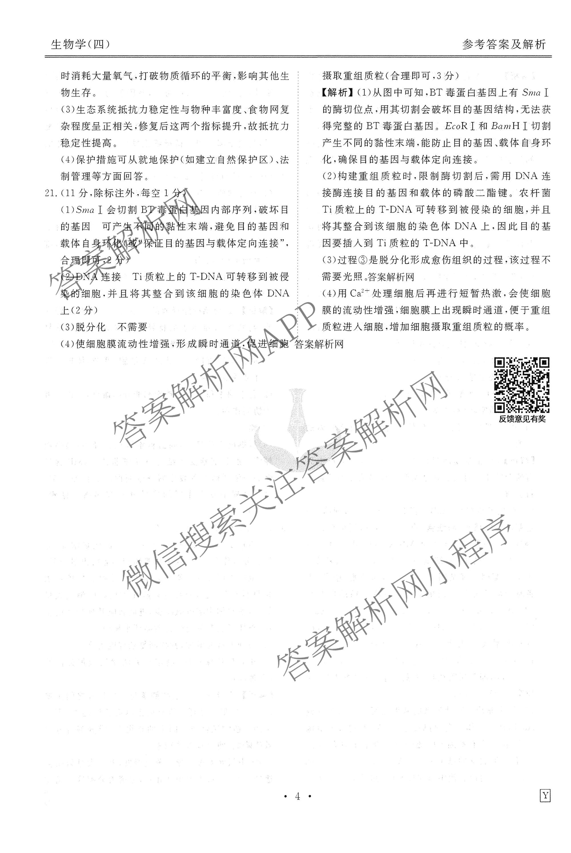 [高三]衡水金卷先享题·调研卷·2026年普通高中学业水平选择性考试模拟(四)4生物(Y)答案