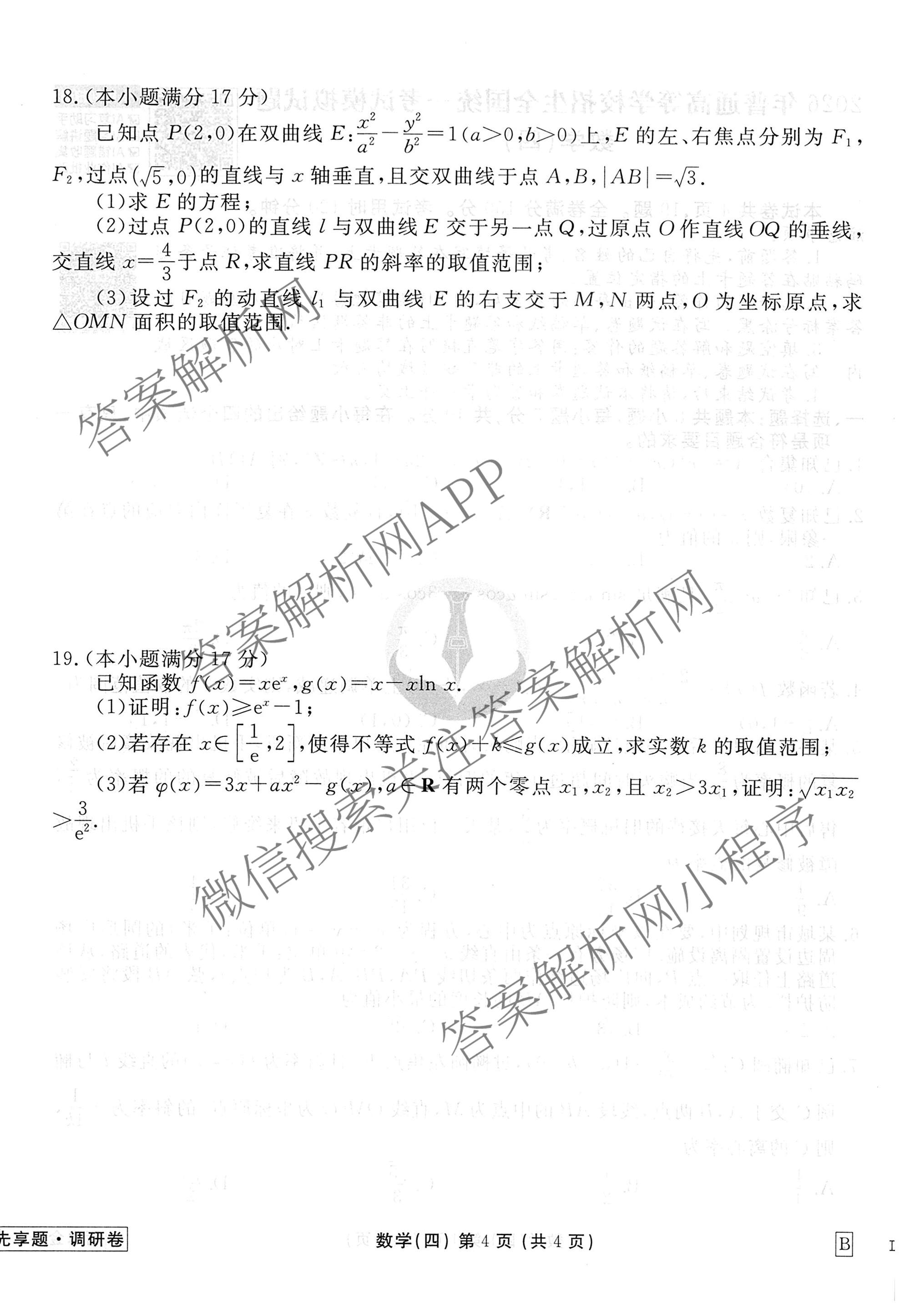 衡水金卷先享题·调研卷·2026年普通高等学校招生全国统一考试模拟试题(四)4数学(B)试题,目前衡水金卷先享题答案网已经汇总了衡水金卷先享题·调研卷·2026年普通高等学校招生全国统一考试模拟试题(四)4数学(B)试题的各科答案和试卷,获取更多衡水金卷先享题答案解析,请在关注本站。