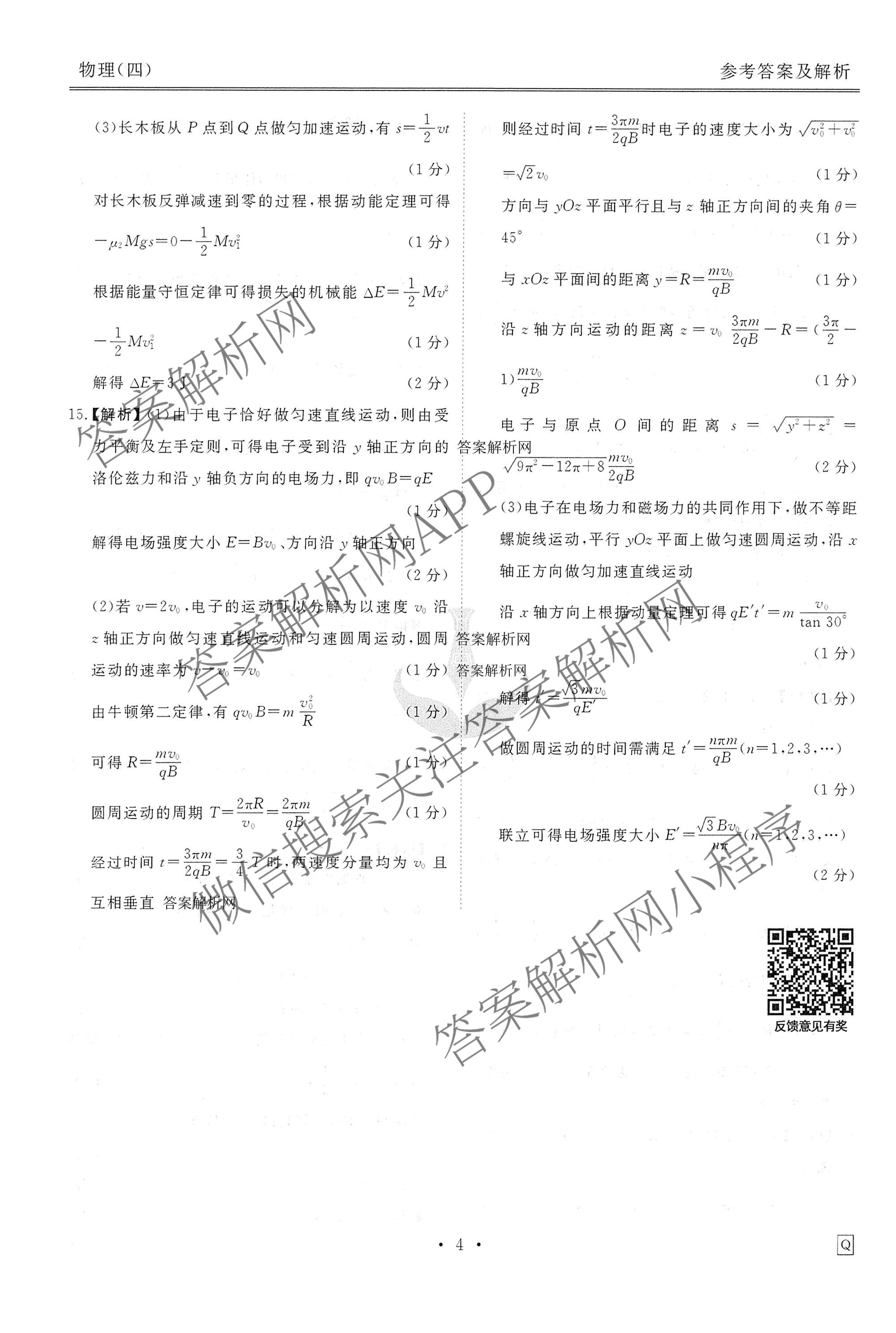 高三[衡水金卷先享题]调研卷2026年普通高中学业水平选择性考试模拟(四)4物理(Q)答案