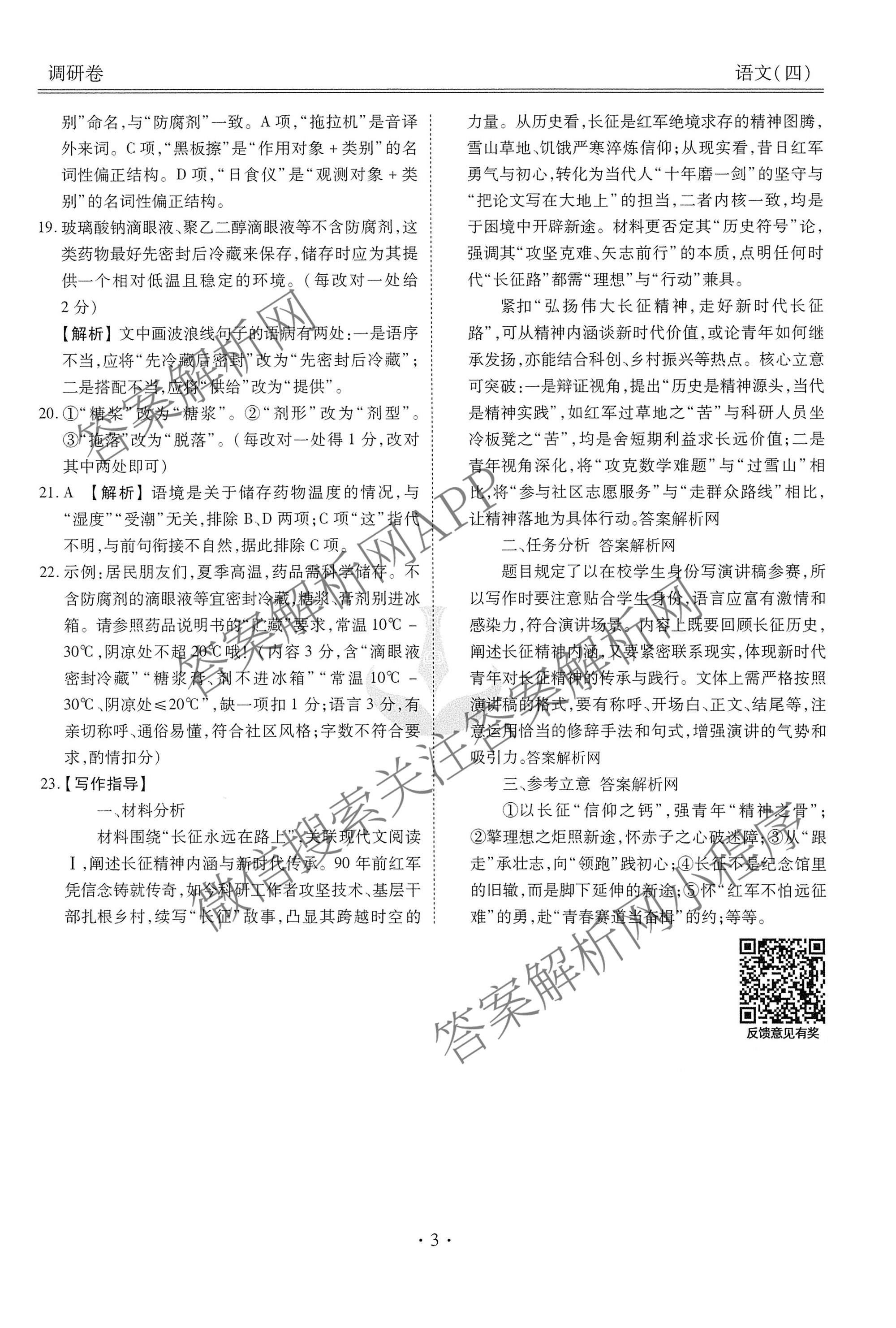 - (衡水金卷先享题)调研卷2026年普通高等学校招生全国统一考试模拟试题(四)4语文答案