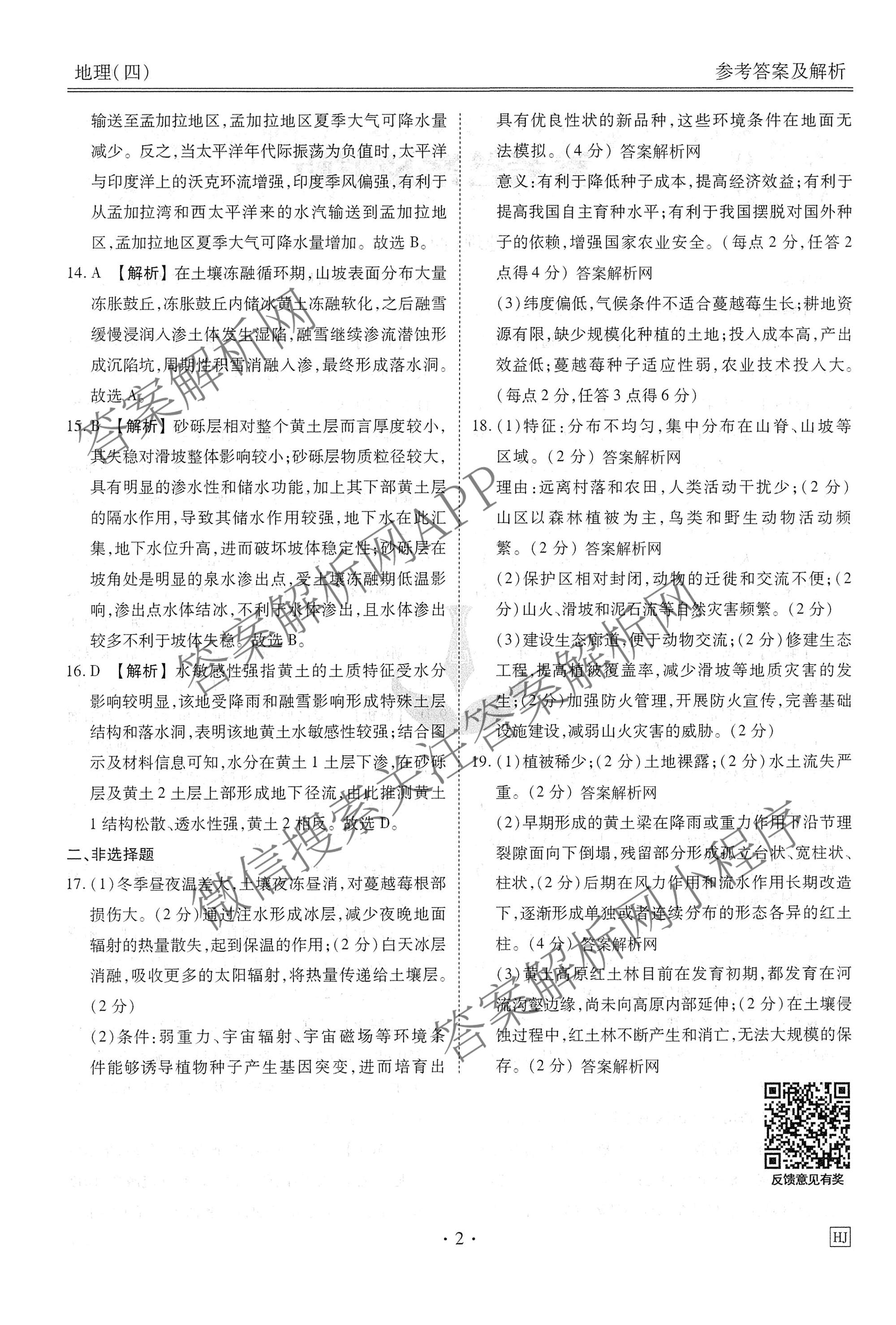 - [高三][衡水金卷先享题]调研卷2026年普通高中学业水平选择性考试模拟试题(四)4地理(HJ)答案