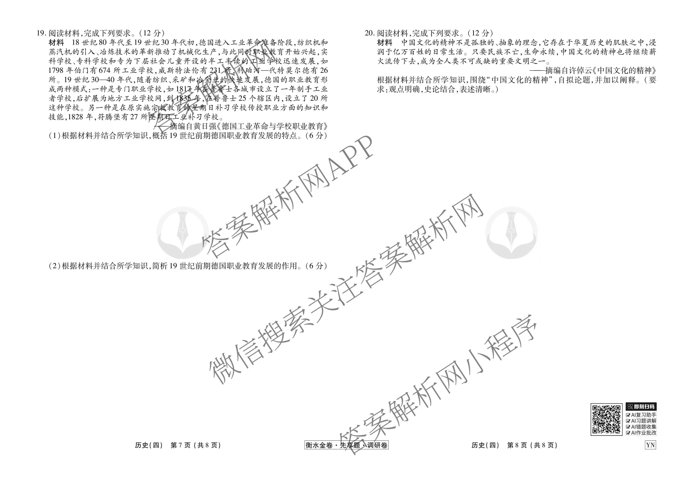 衡水金卷先享题·调研卷·2026年普通高中学业水平选择性考试模拟试题(四)4历史(YN)试题,目前衡水金卷先享题答案网已经汇总了衡水金卷先享题·调研卷·2026年普通高中学业水平选择性考试模拟试题(四)4历史(YN)试题的各科答案和试卷,获取更多衡水金卷先享题答案解析,请在关注本站。