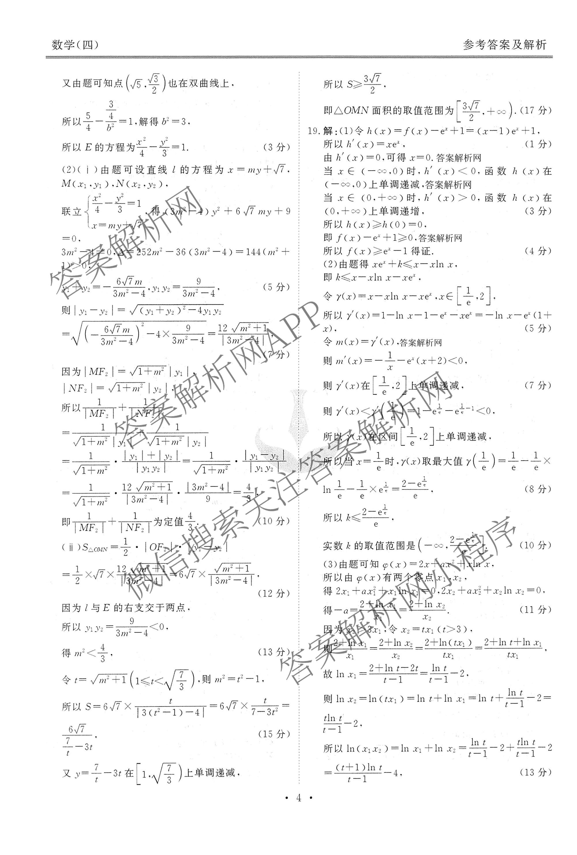 [高三]衡水金卷先享题调研卷2026年普通高等学校招生全国统一考试模拟试题(四)4数学(A)答案