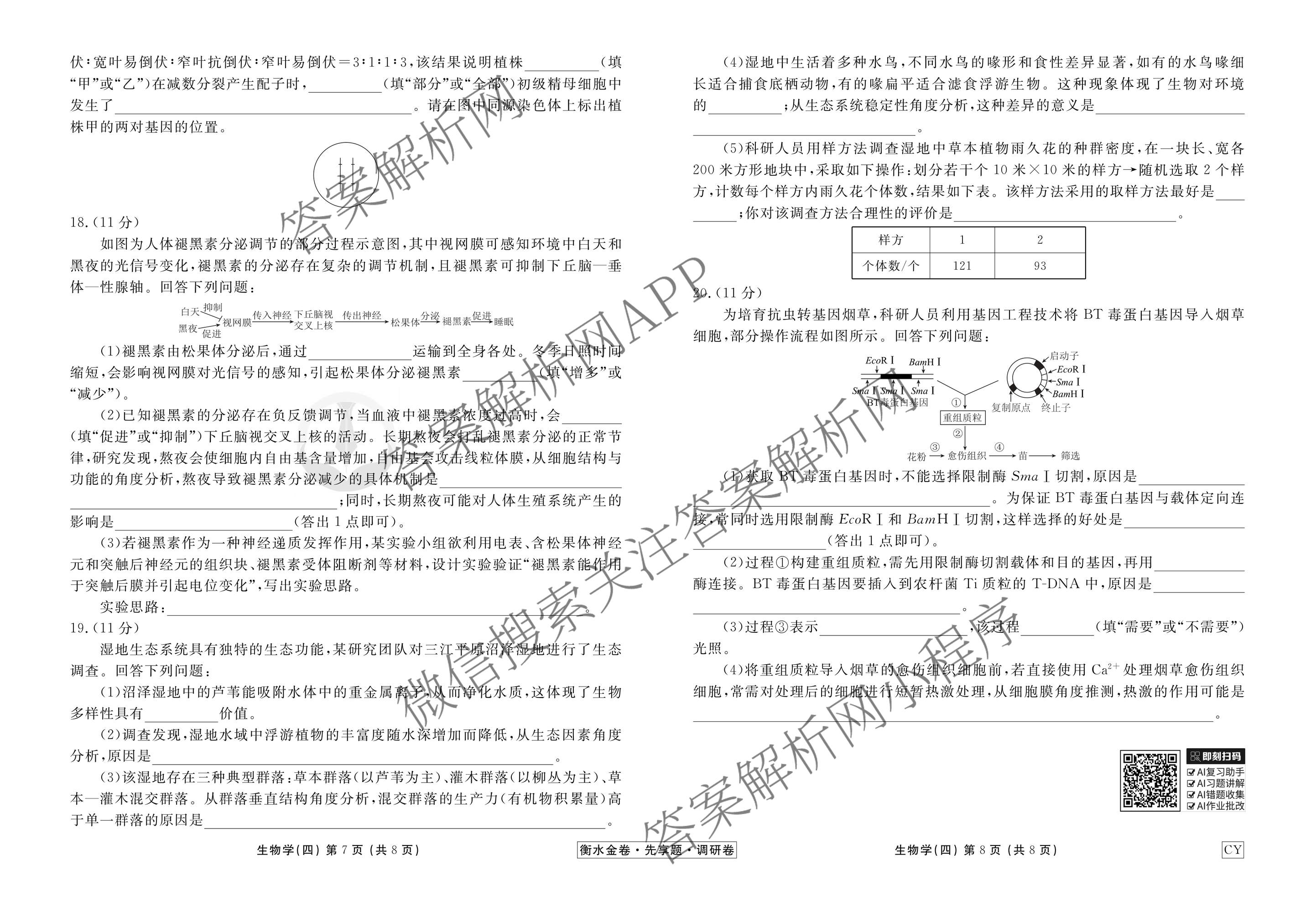 衡水金卷先享题·调研卷·2026年普通高中学业水平选择性考试模拟试题(四)4生物(CY)试题,目前衡水金卷先享题答案网已经汇总了衡水金卷先享题·调研卷·2026年普通高中学业水平选择性考试模拟试题(四)4生物(CY)试题的各科答案和试卷,获取更多衡水金卷先享题答案解析,请在关注本站。