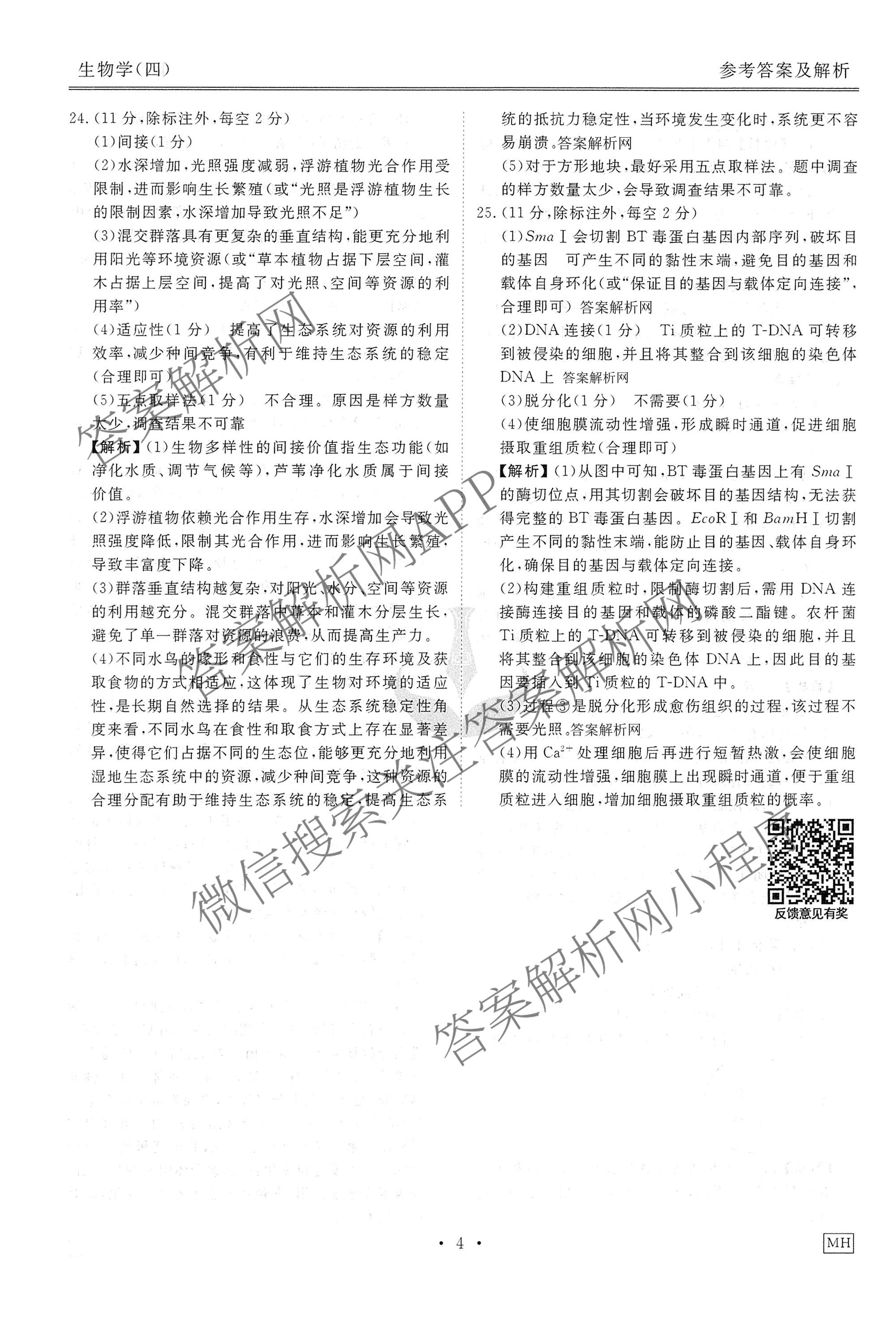 (高三)(衡水金卷先享题)调研卷2026年普通高中学业水平选择性考试模拟(四)4生物(MH)答案