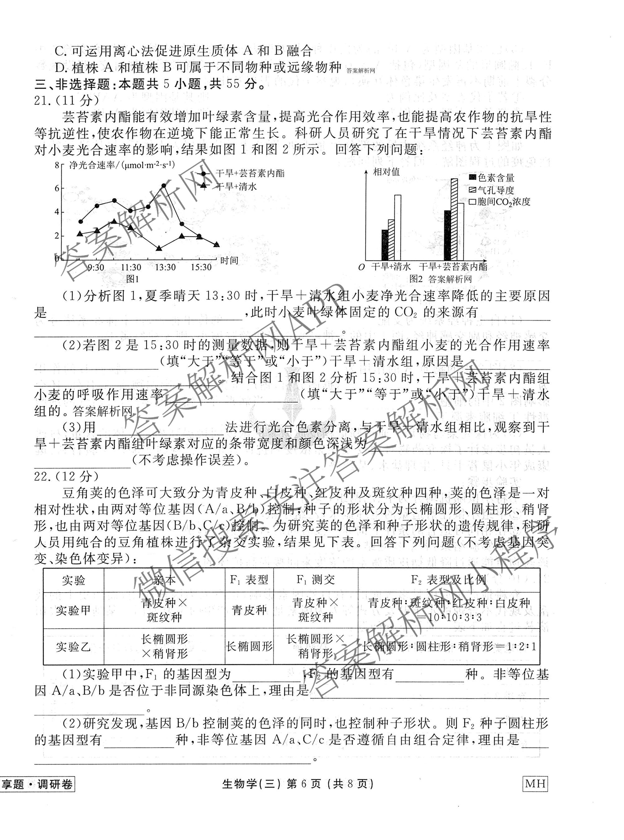 衡水金卷先享题·调研卷·2026年普通高中学业水平选择性考试模拟(三)3生物(MH)试题,目前衡水金卷先享题答案网已经汇总了衡水金卷先享题·调研卷·2026年普通高中学业水平选择性考试模拟(三)3生物(MH)试题的各科答案和试卷,获取更多衡水金卷先享题答案解析,请在关注本站。